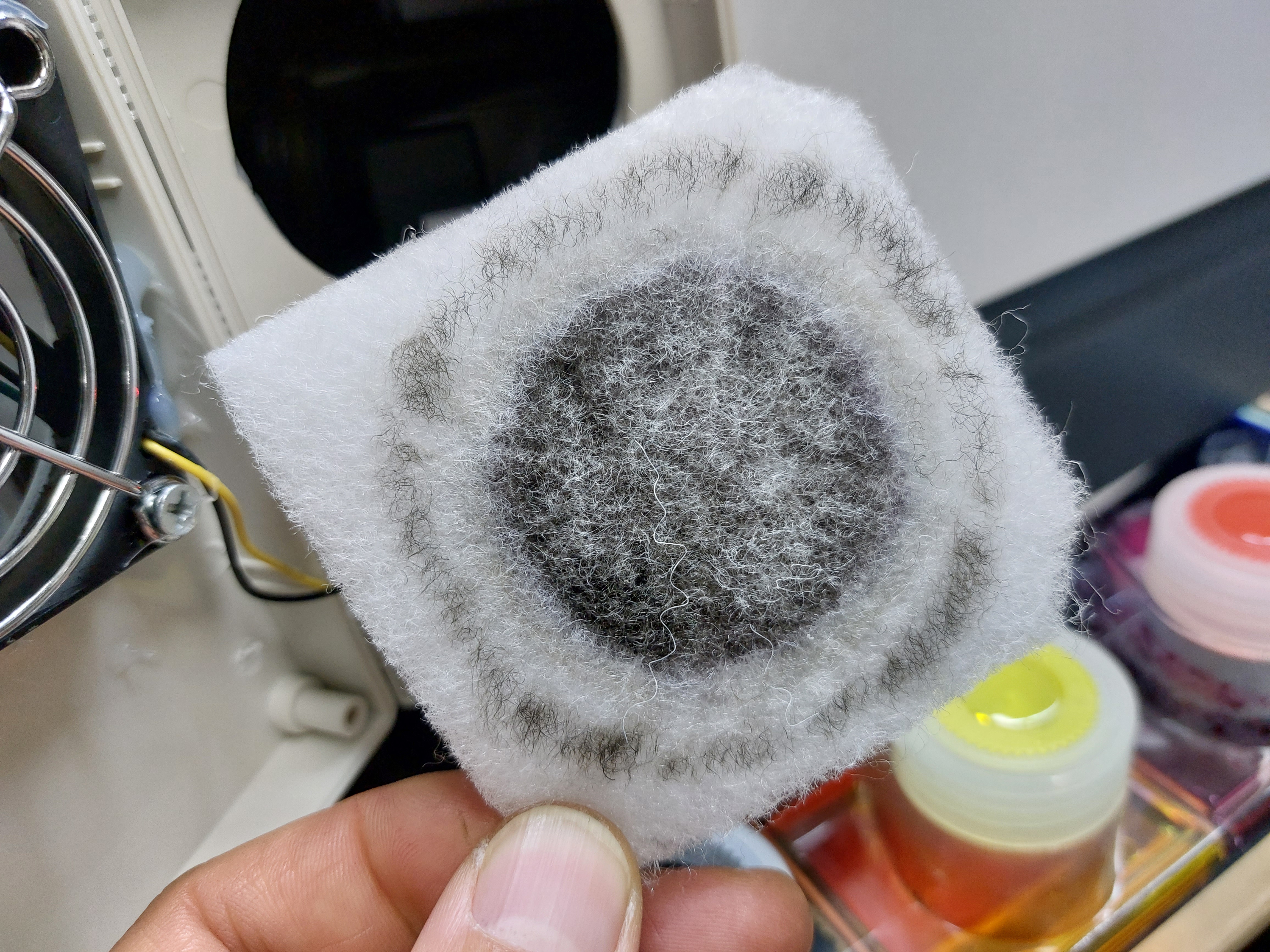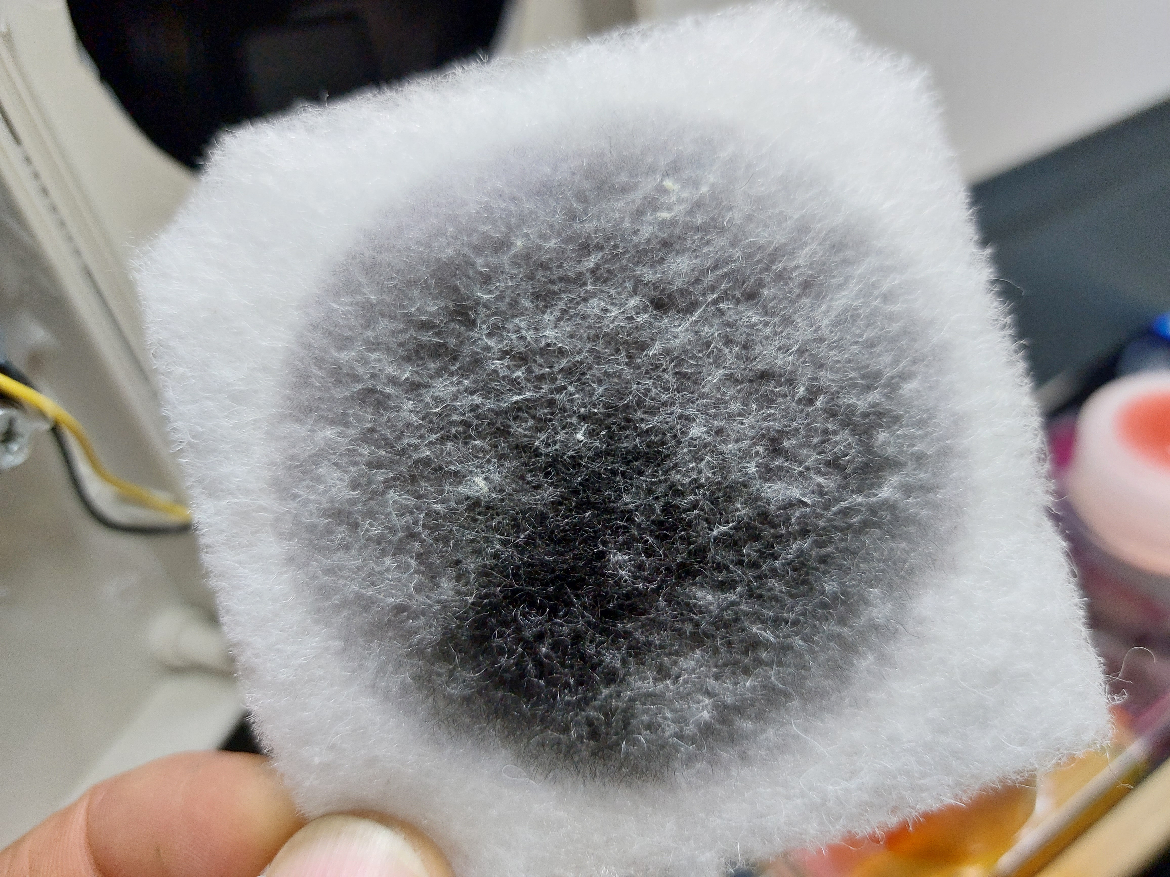 필터에 잉크분진이 붙고 계속 된 바람이 건조를 시켜줬을까요 ?