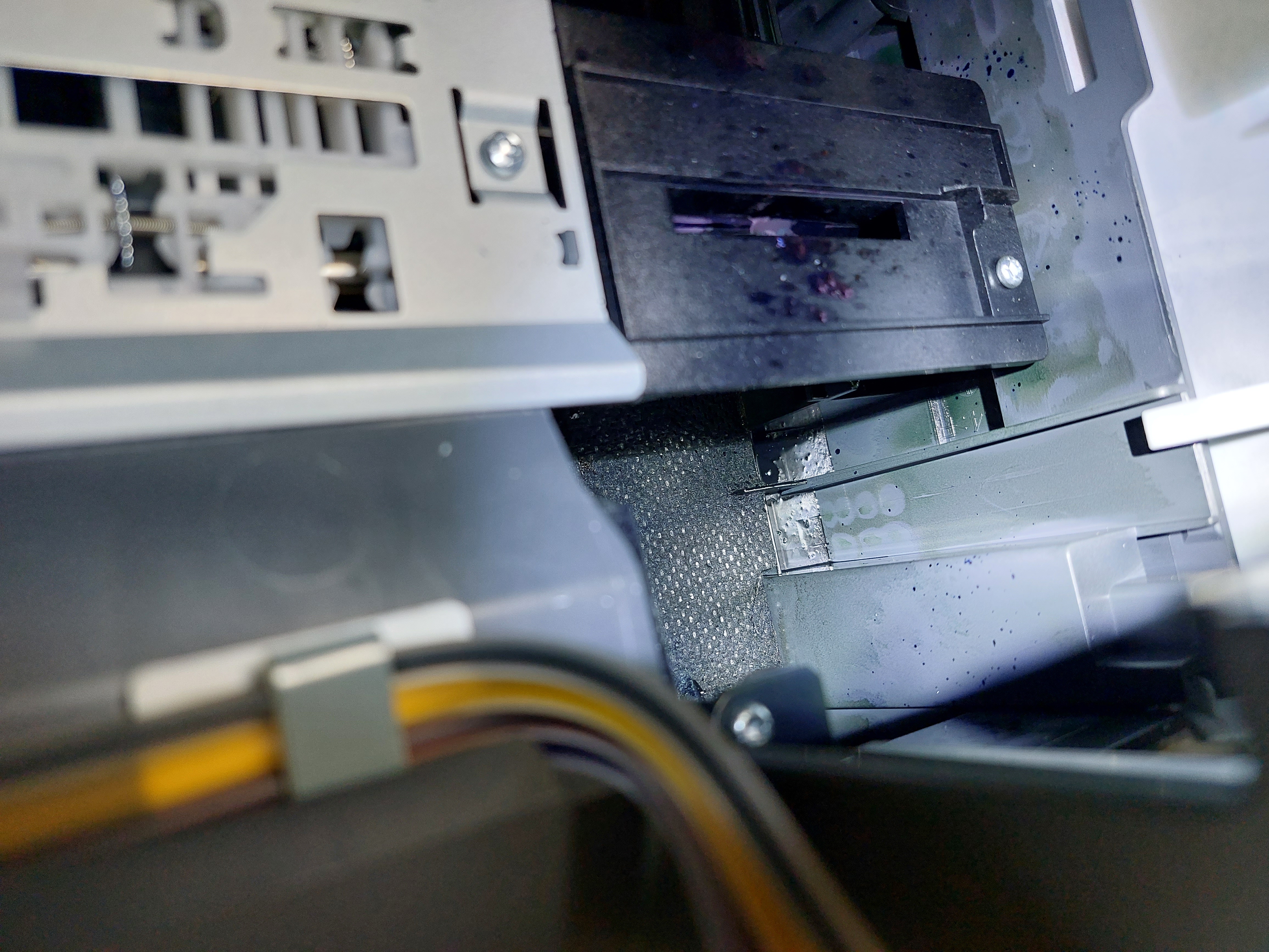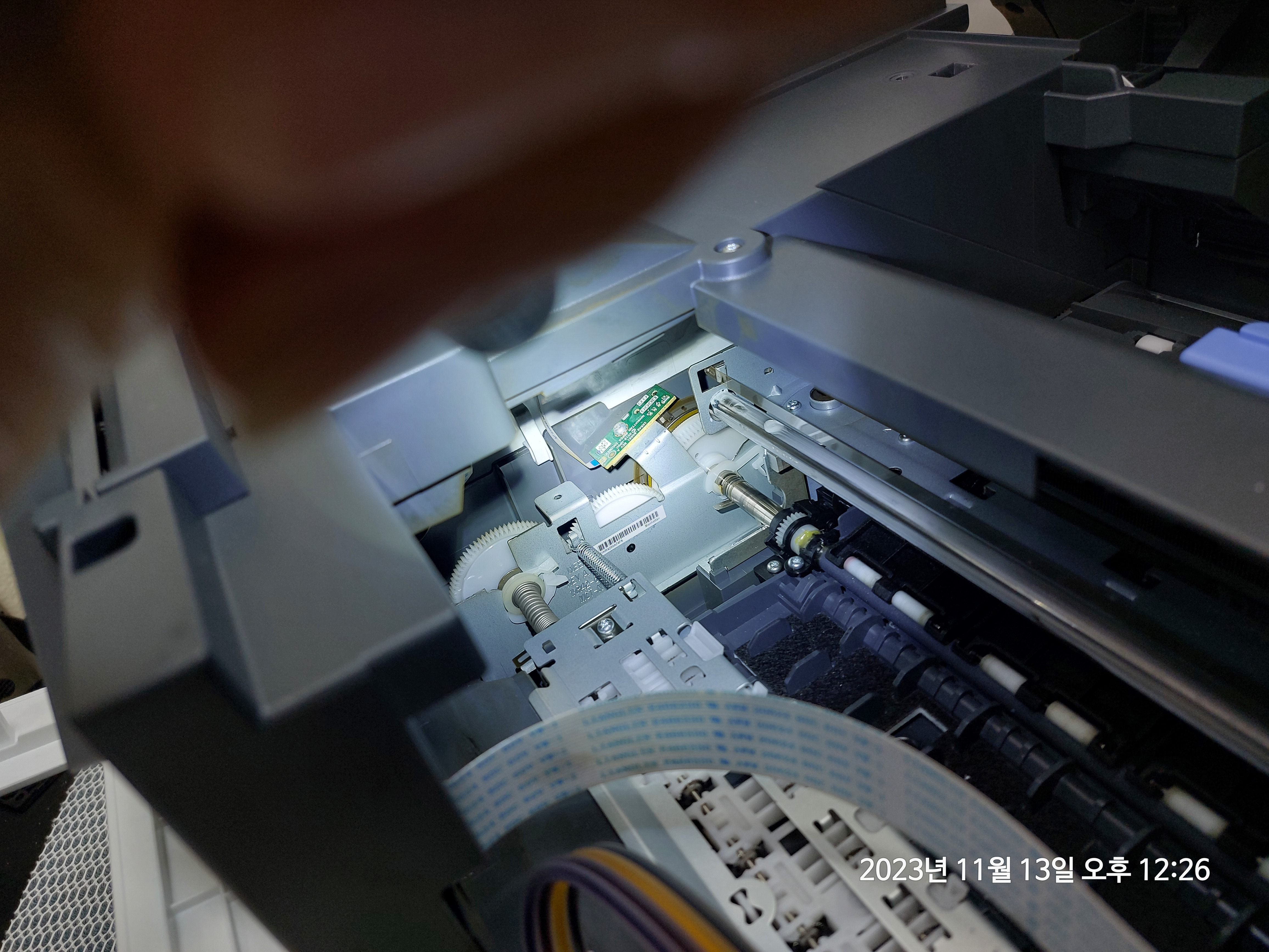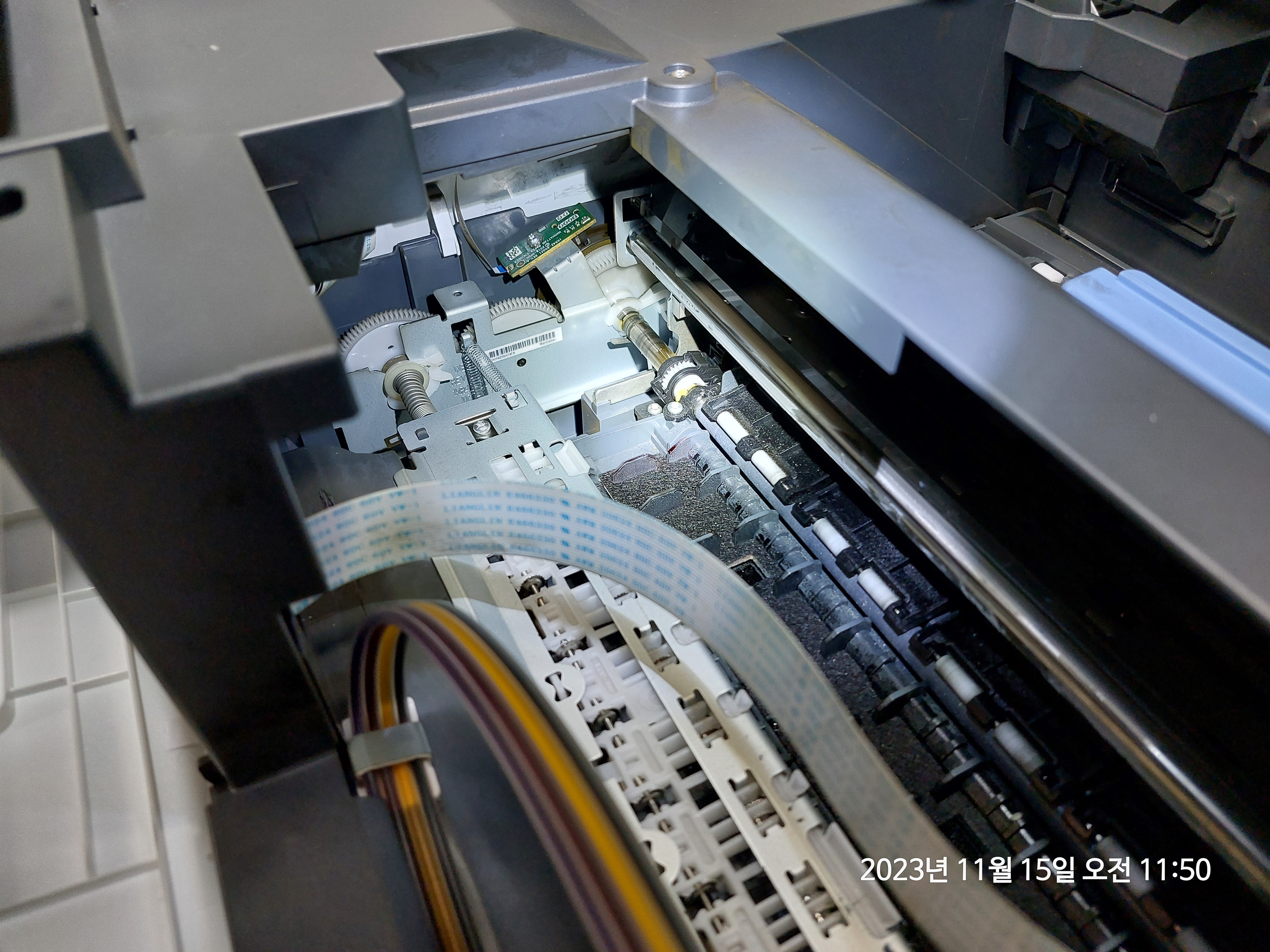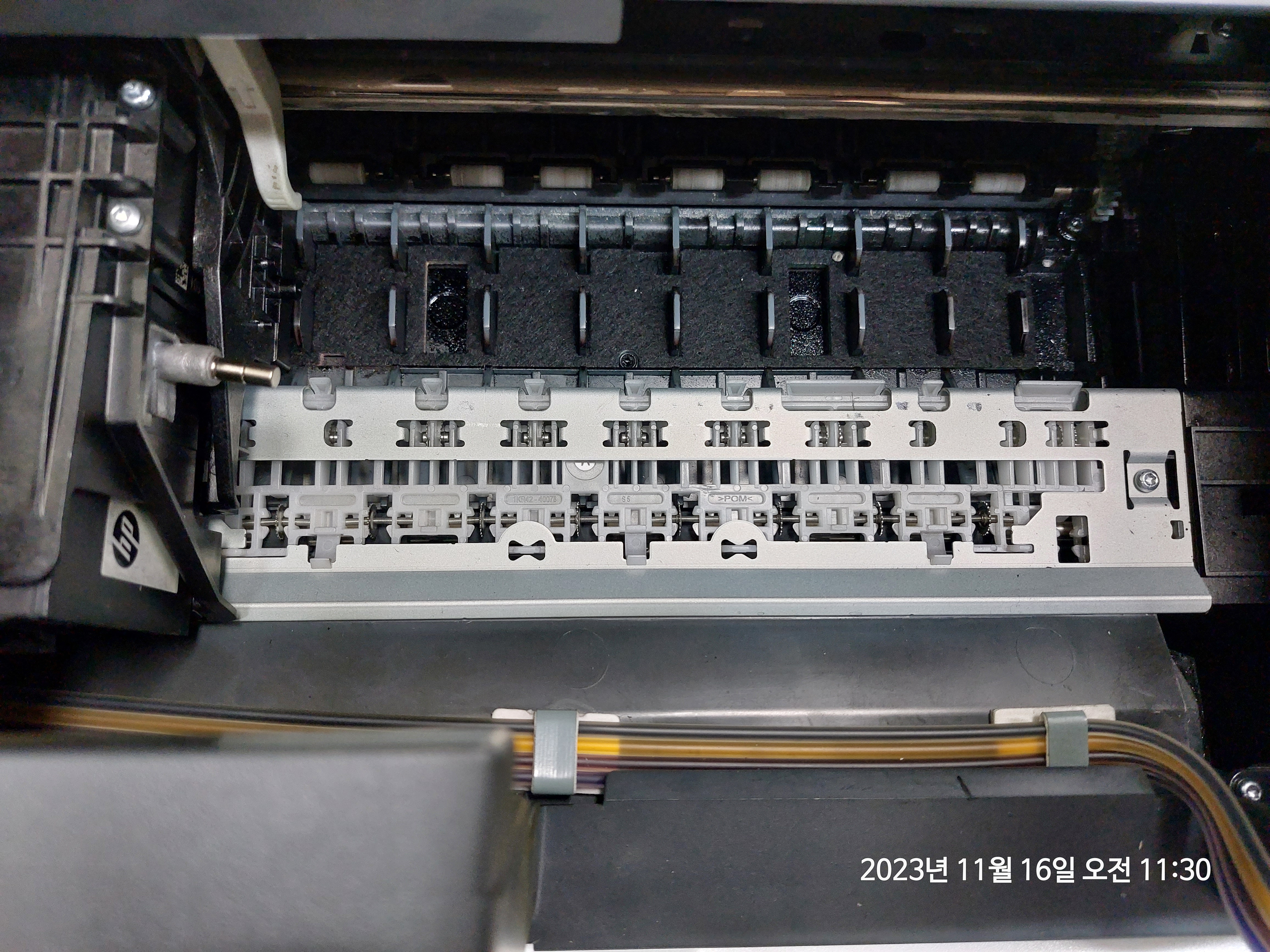 테스트 과정에서는 대부분 색지 위주로 출력을 진행하였기에 발생하는 잉크 분진이 훨씬 많았을거라는 가정하에 프린터 내부가 이 정도로 깨끗하다는 것은 기대 이상의 성과라고 보여집니다.