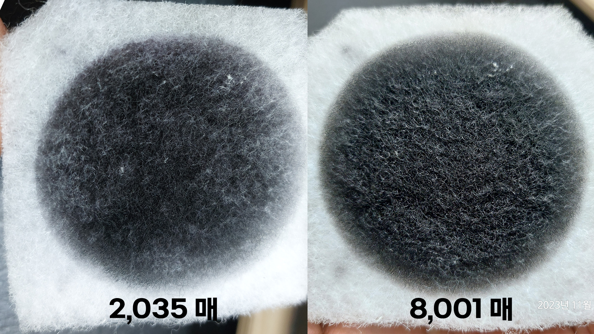 초기 필터와 8,000매 출력 후 필터 비교사진입니다.