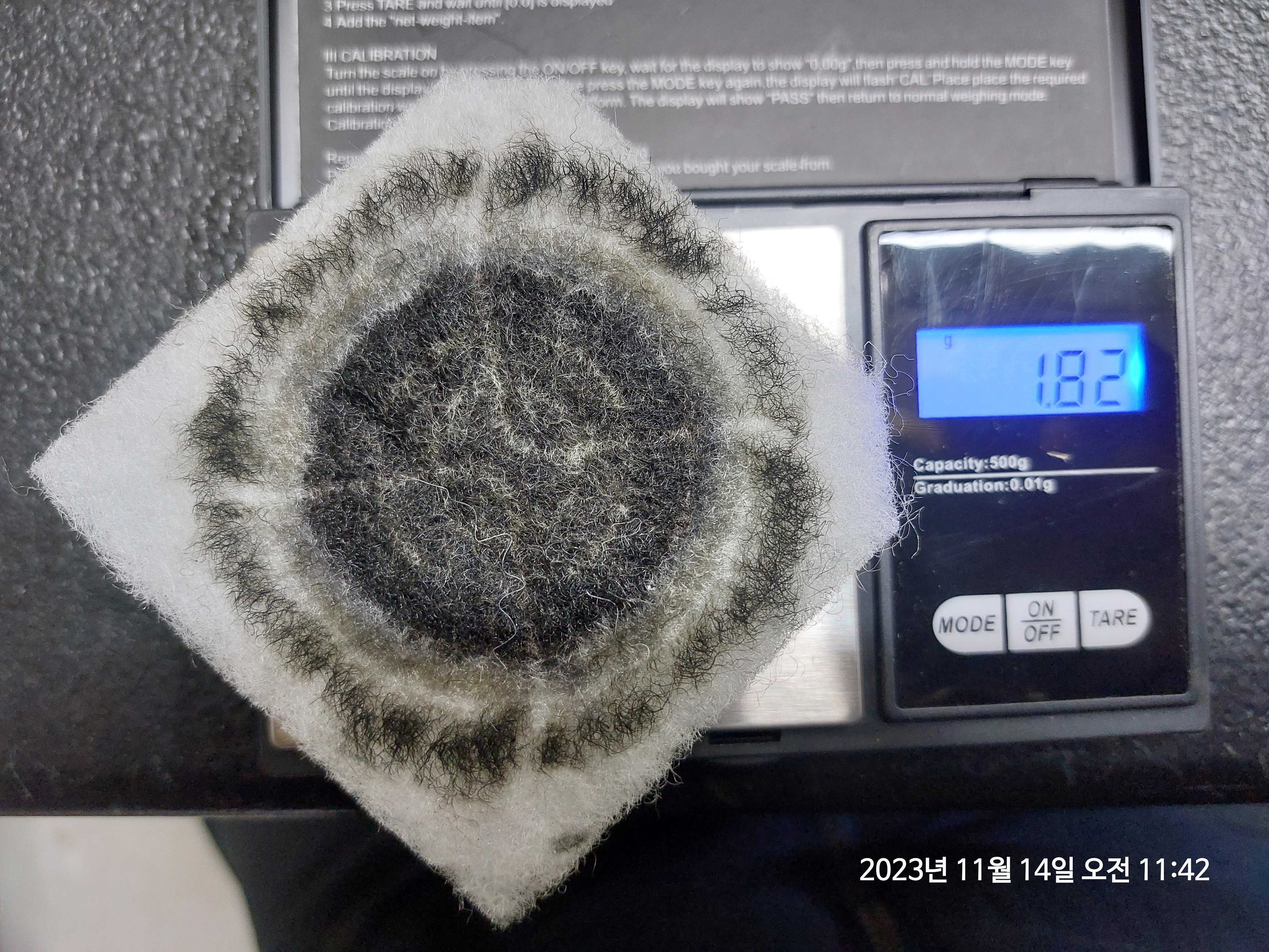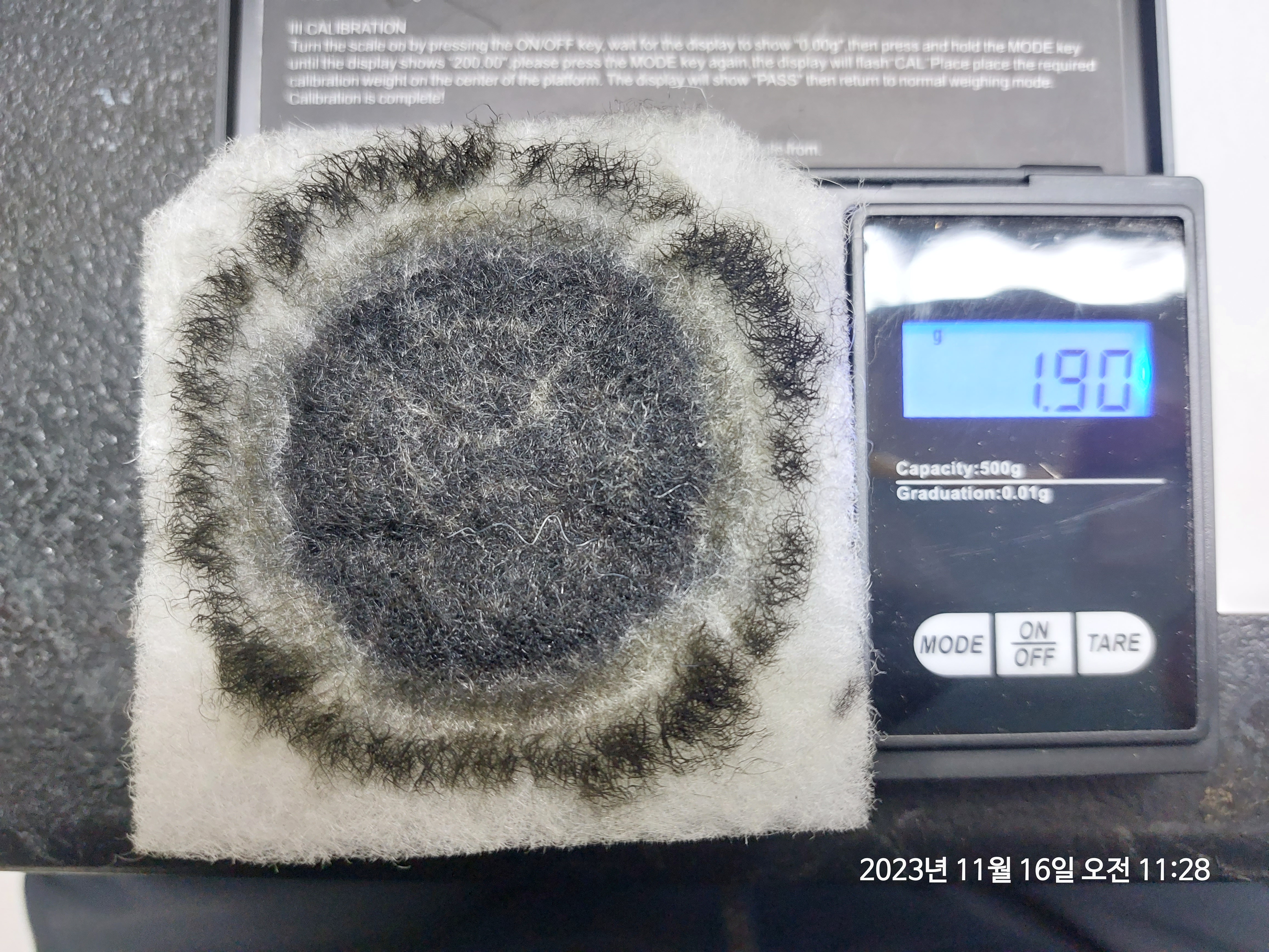 필터 무게가 저번 주 확인한 무게보다 좀 줄었습니다.