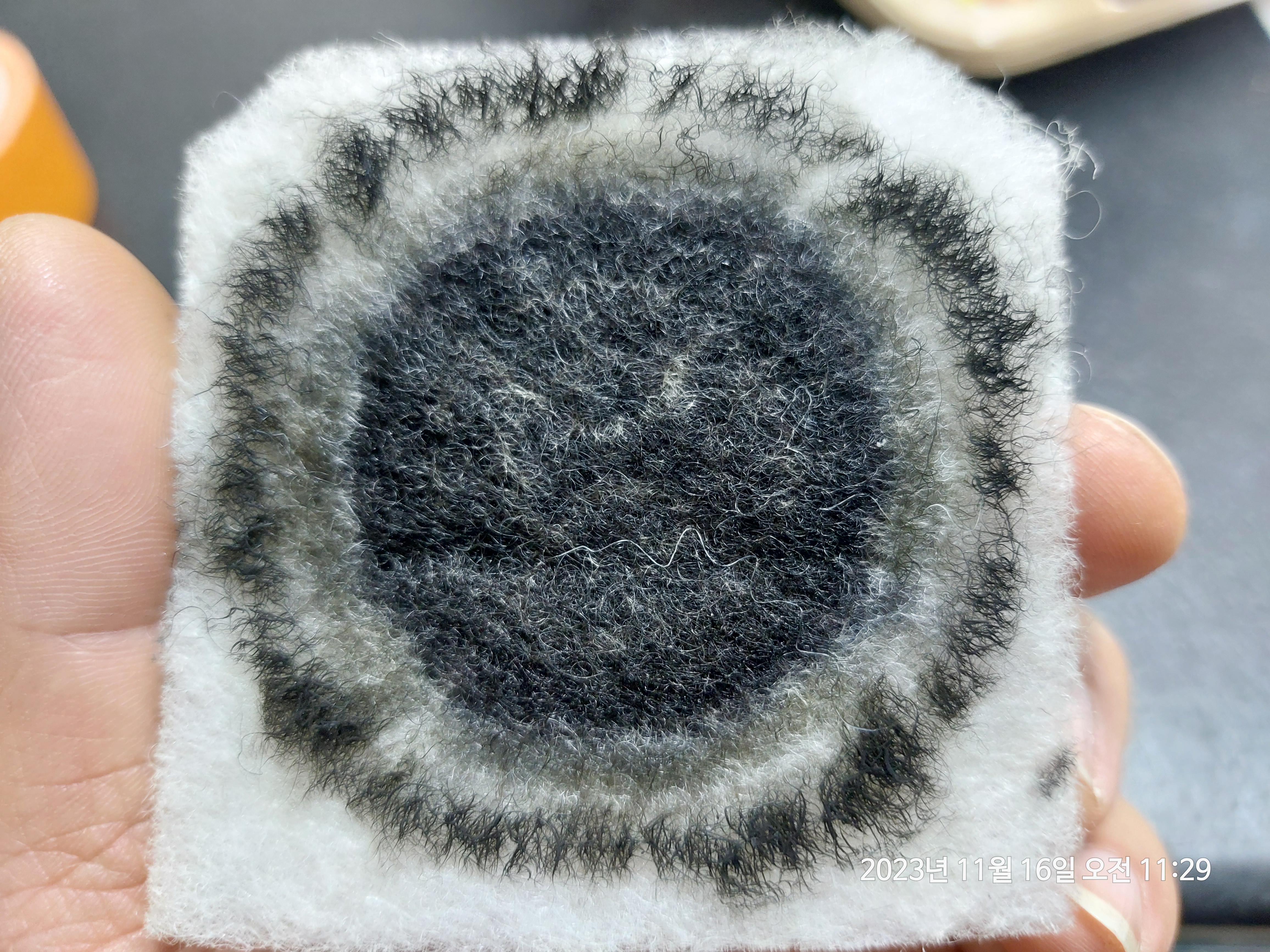 분진이 들어가는쪽 필터 사진입니다.