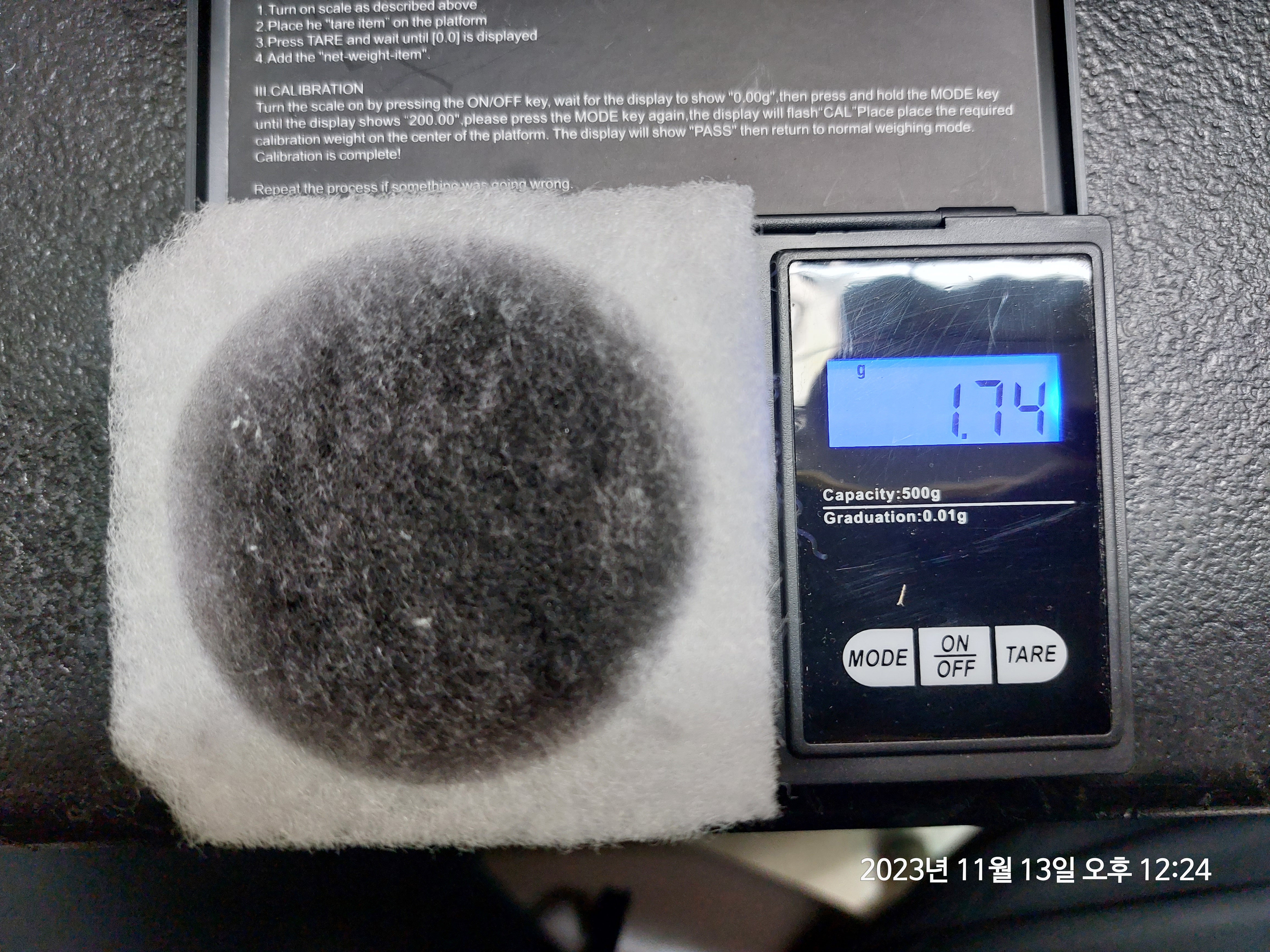 아침에 출근 후 출력전 무게를 재 봤는데 1.76g 이었습니다.