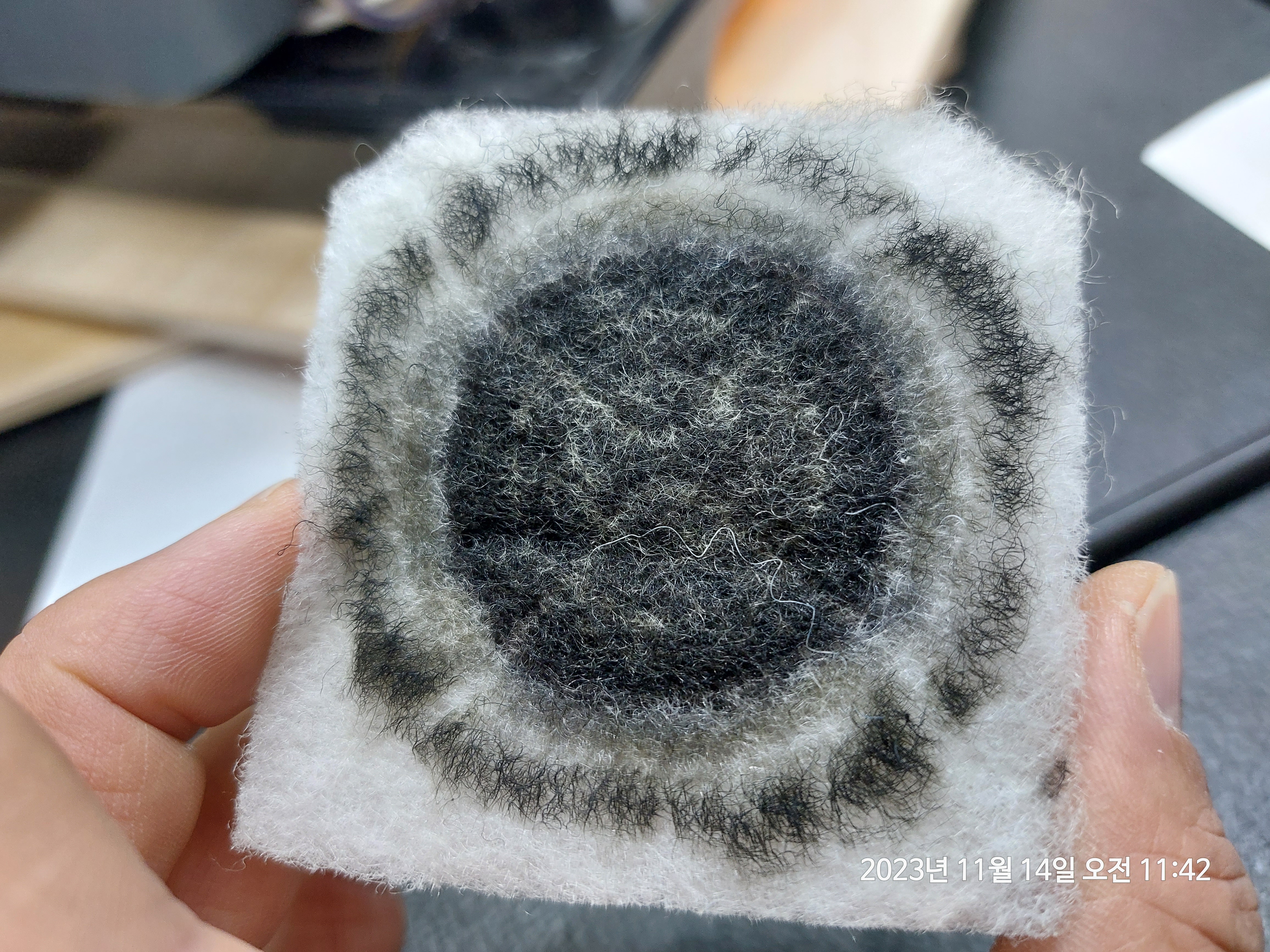 분진이 들어가는쪽 필터 사진입니다.