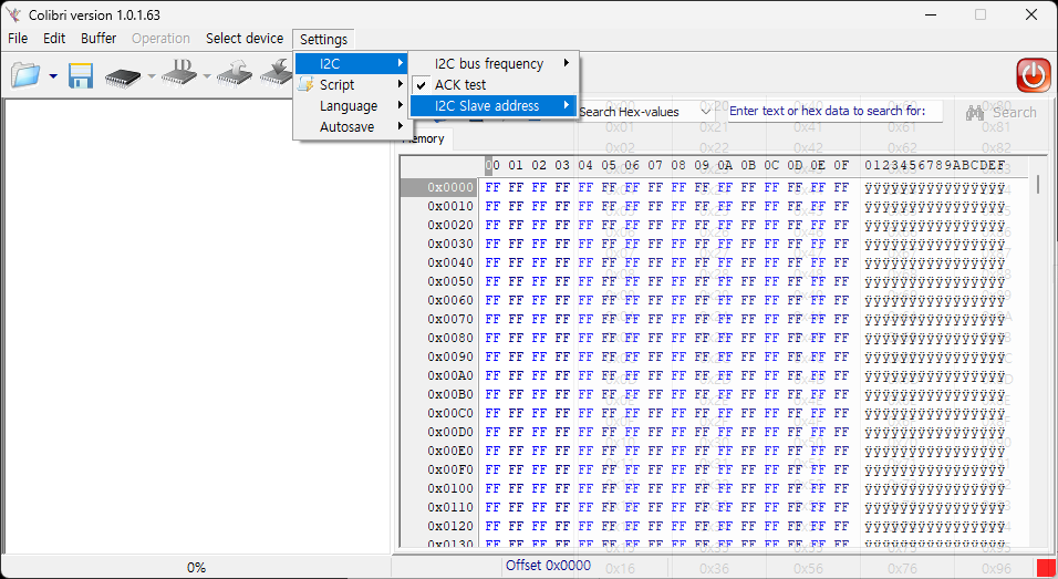 세팅 메뉴의 I2C 메뉴내 번지 지정을 해주면 됩니다.