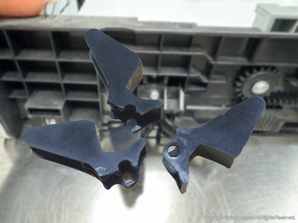 급기야, 트랜스미션과 용지 플레이트를 올려주는 기어 등에 문제가 생길 소지를 제공하게 됩니다.