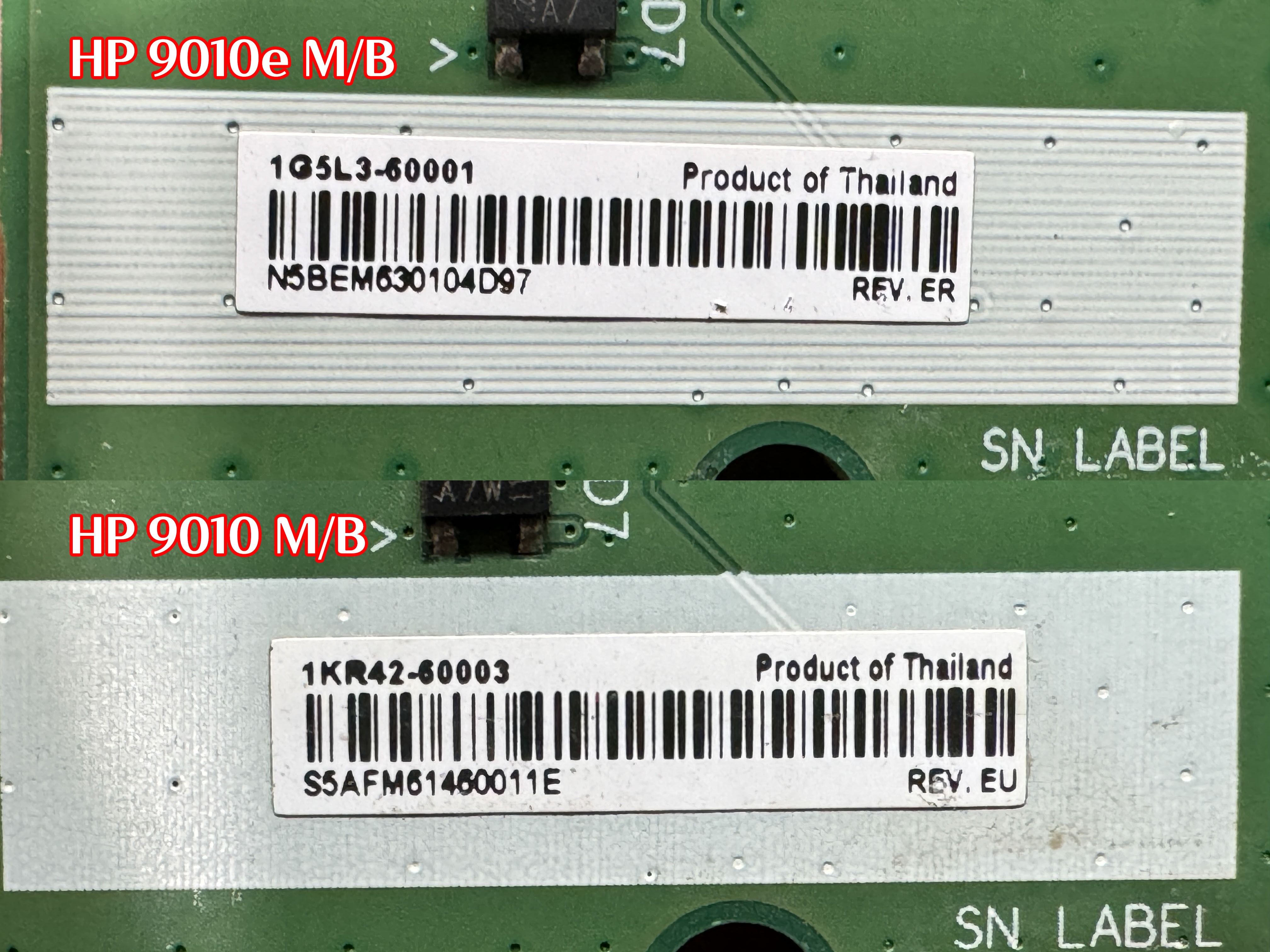 HP 9010과 HP 9010e 의 메인보드는