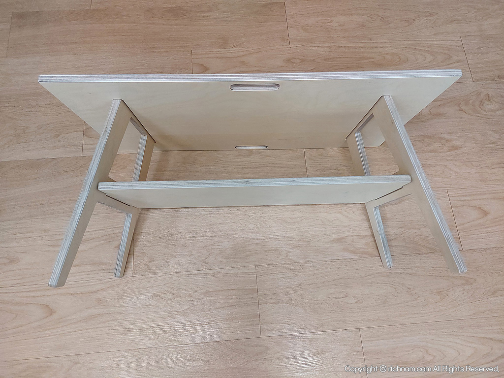 당연히 양쪽 다리는 상판에 끼워진채 강제로 벌려져 있기에