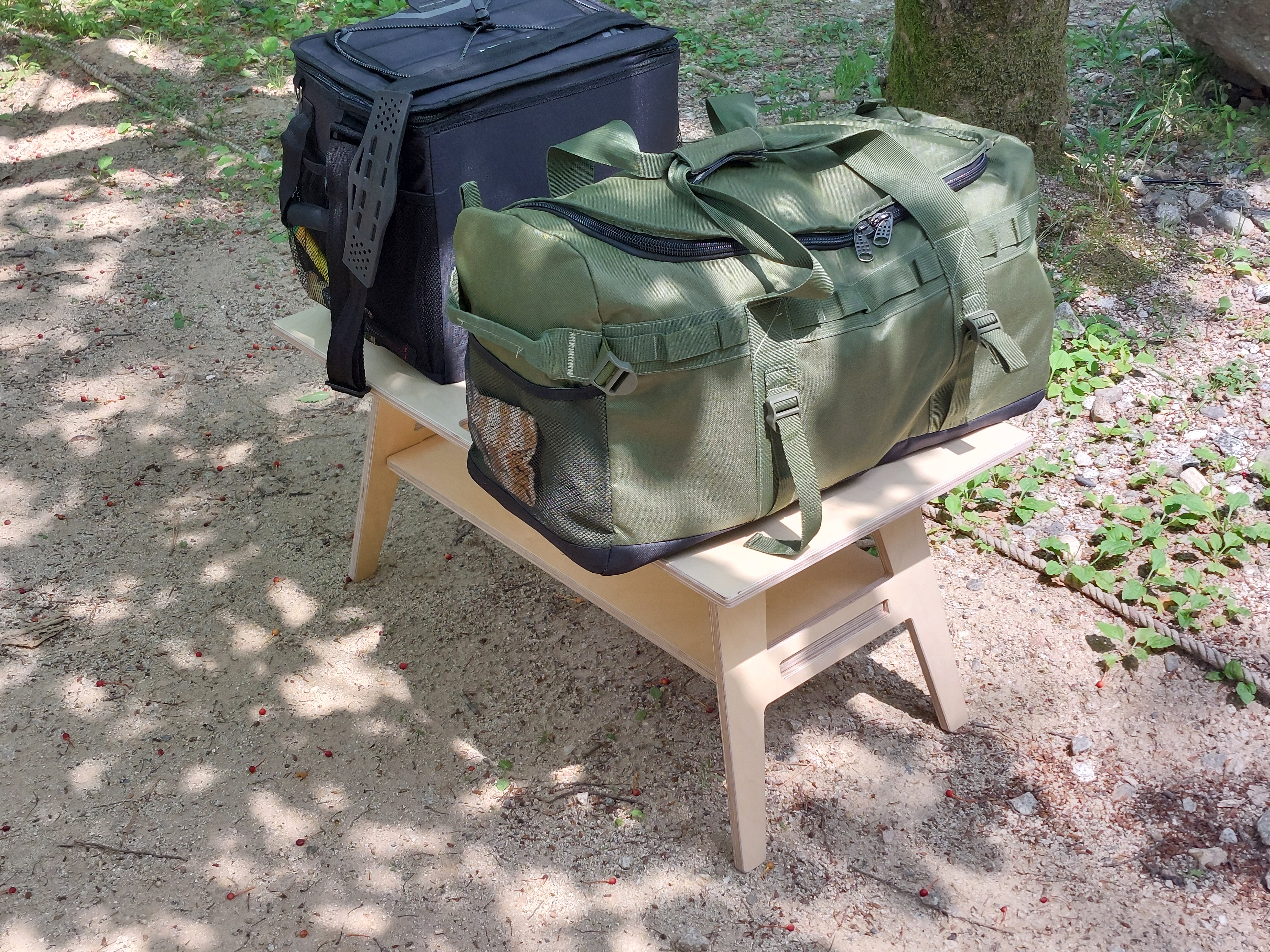 그동안의 경험을 비추어 봤을 때가장 간단하지만 튼튼한 캠핑 테이블이 아닐까 싶습니다. 조립과 분해가 쉽습니다. 분해후 수납도 쉽기에... ㅎㅎ 일단 완성품 모습입니다. 앞 모습