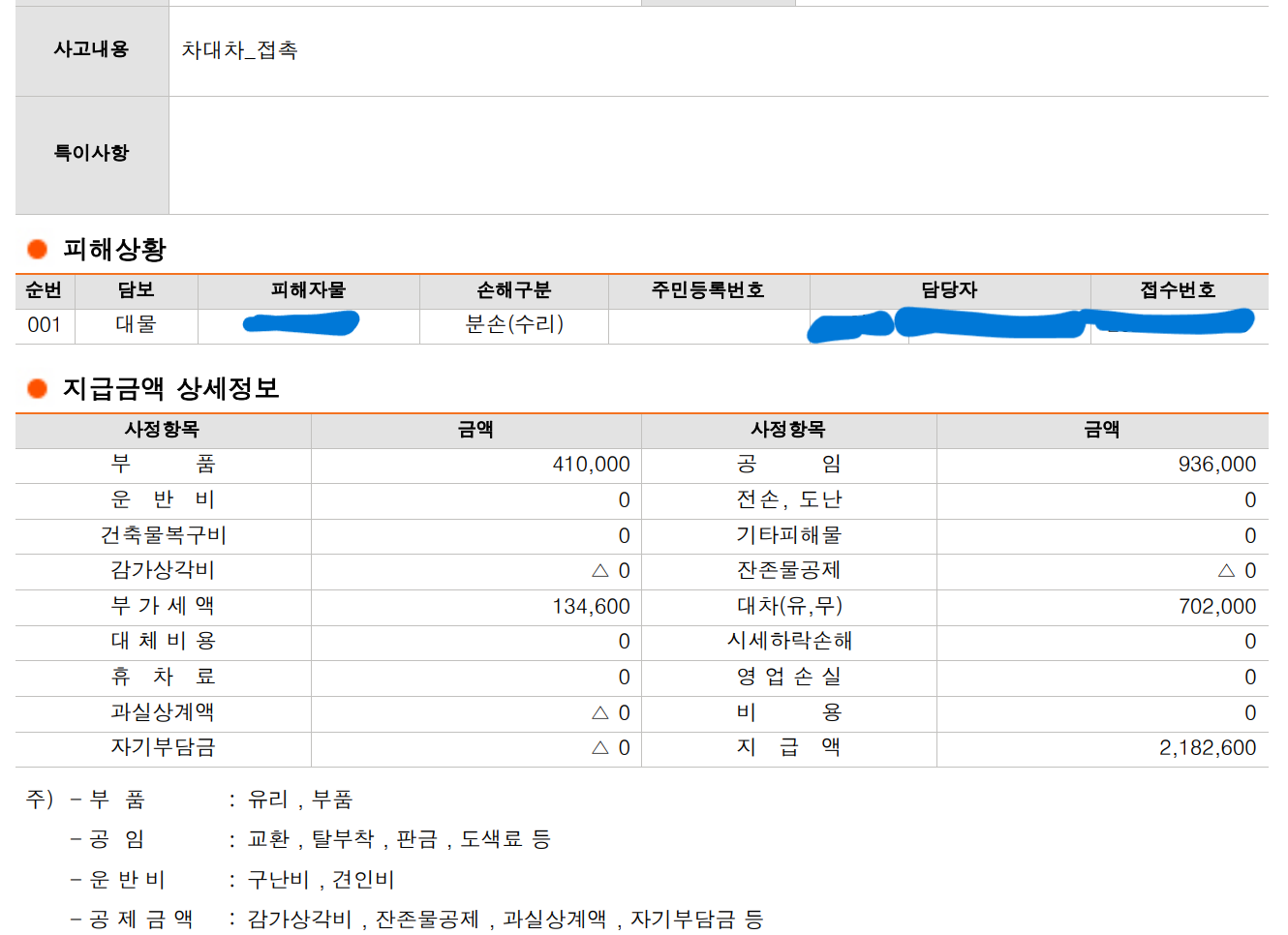뒷문 교체비용이 1,480,000원이 나왔네요.