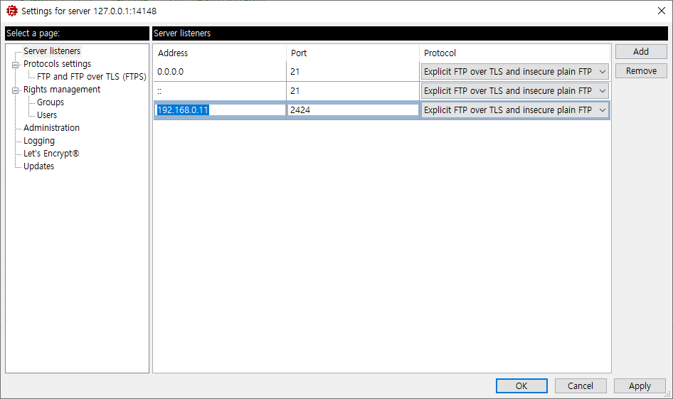 그리고, 내 윈도우즈의 방화벽에서 FTP 서버가 통신을 원활히 할 수 있게 해줘야 합니다.