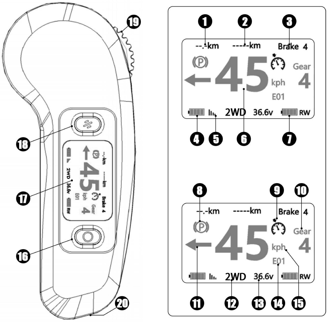 | 10. 스피드 기어 | 11. 방향 | 12. 드라이브 모드(2WD) |