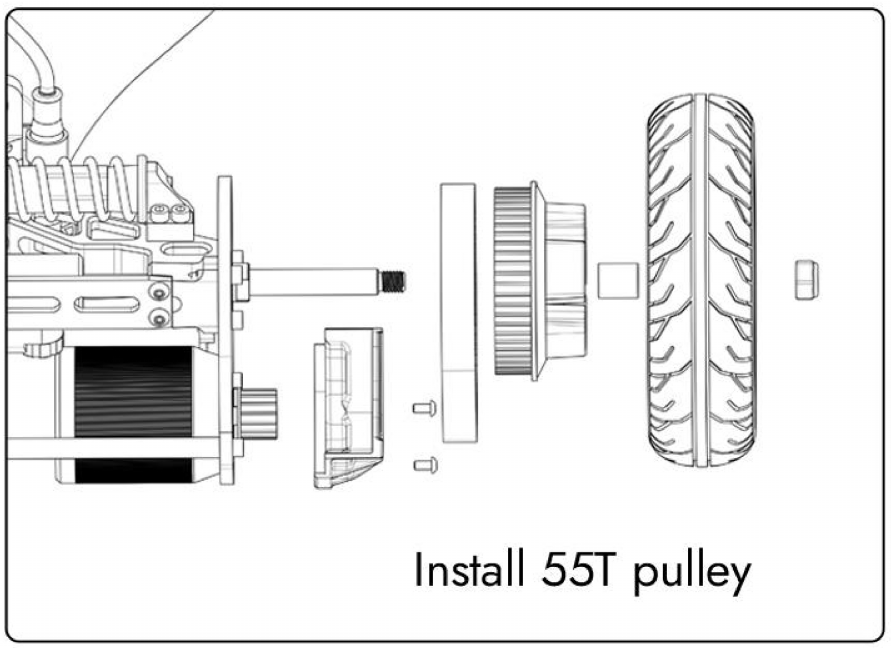 RUCKUS가 공장을 떠날 때 다양한 라이딩 경험을 제공할 수 있도록 두 세트의 풀리를 준비합니다. 기본 설치는 최대 속도 55km/h의 고토크 68T 풀리이며 조정 후 보드에 설치했습니다. . 이 파워 풀리 모드는 더 많은 전력을 절약하며 뒷바퀴에 직접 설치하여 사용할 수 있습니다.