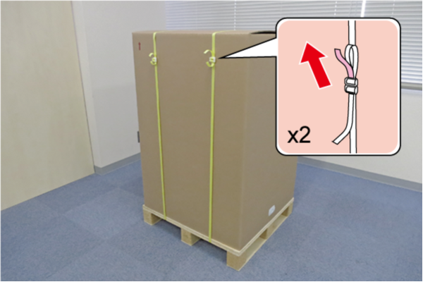 PP 밴드의 루프 쪽 끝을 잡고 들어 올려 두 개의 PP 밴드를 제거합니다.