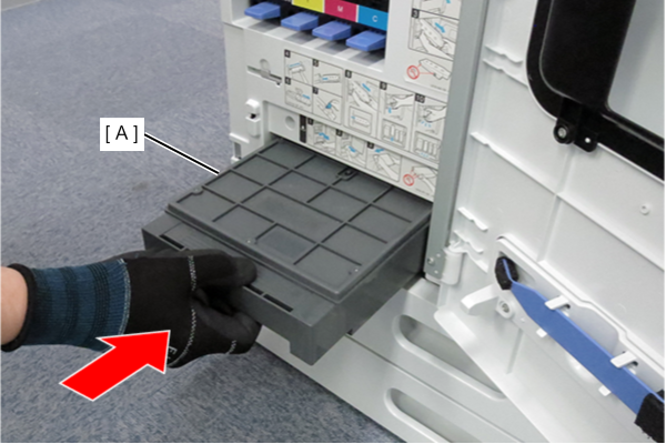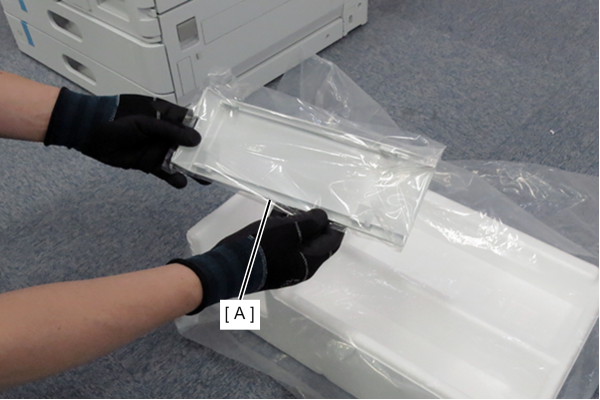 - 쿠션재에서 핸들 커버(A)를 제거합니다.