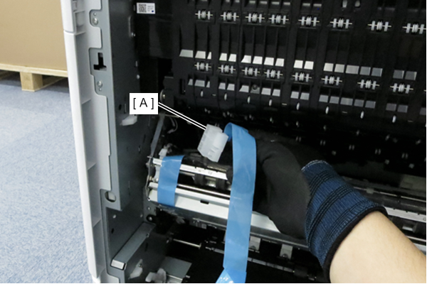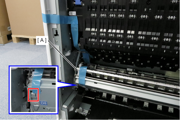 테이프를 당겨도 운송 고정 부품을 제거할 수 없는 경우, 해당 부품의 레버(A)를 눌러 제거하세요.