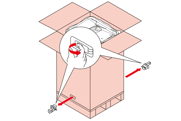 - 본 제품은 운송에 필요한 세 가지 운송 부품으로 구성되어 있습니다. 포장을 풀 때 실수로 버리지 않도록 주의하십시오(자세한 내용은 아래 참조).