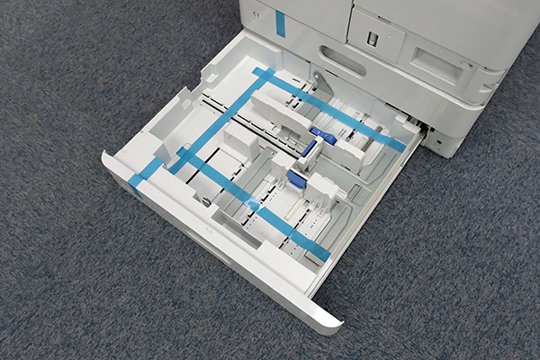 테이프를 당겨도 운송 고정 부품을 제거할 수 없는 경우, 해당 부품의 레버(A)를 눌러 제거하세요.