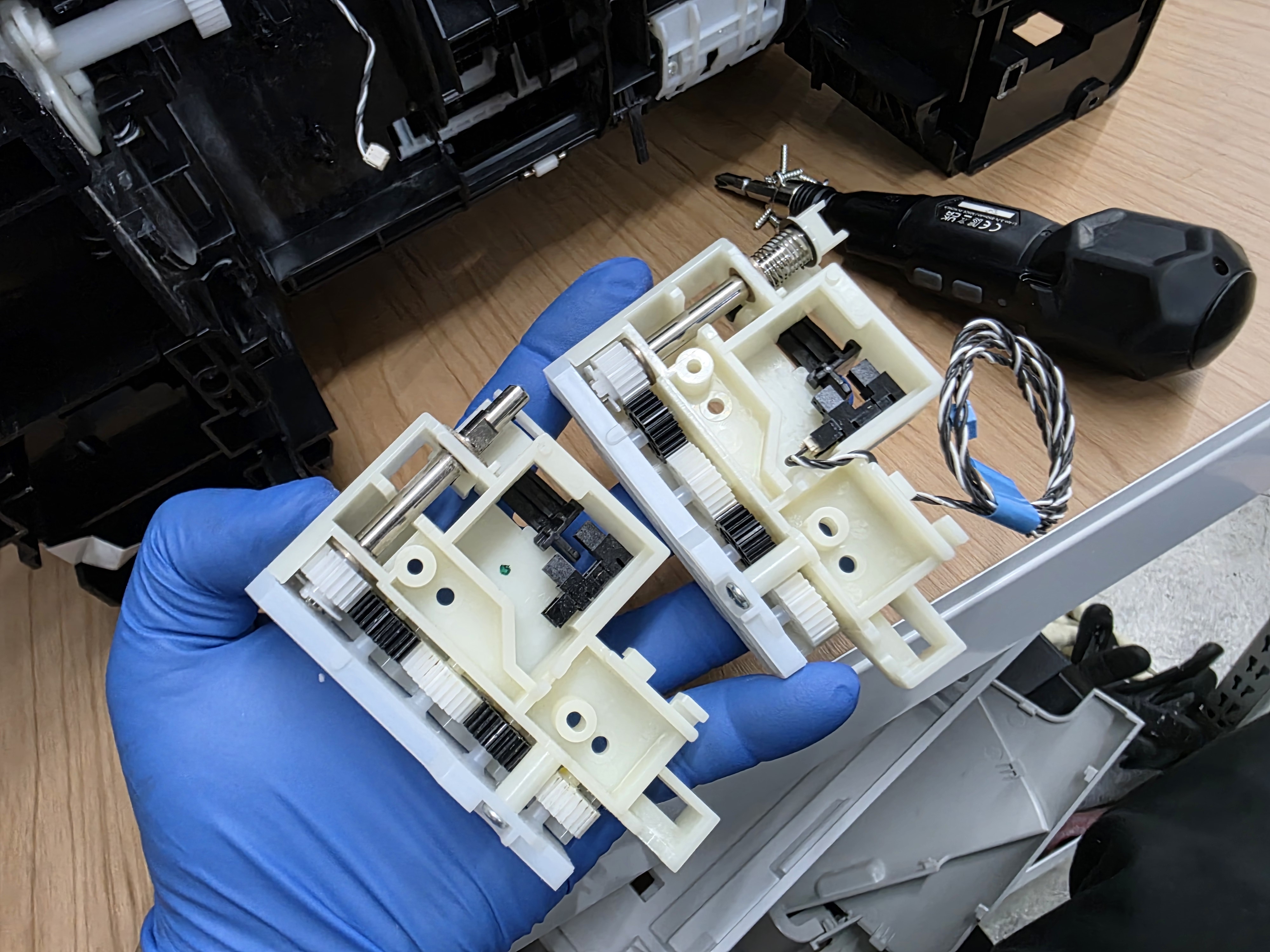 정품 파츠 장착 및 유격 조정: 엡손 정품 클러치 파츠를 교체 장착합니다. 이 과정에서 기어 간의 유격(Backlash)과 장착 깊이를 정확하게 조정하는 것이 중요합니다. 미세한 오차도 급지 타이밍 오류로 이어질 수 있기 때문입니다.