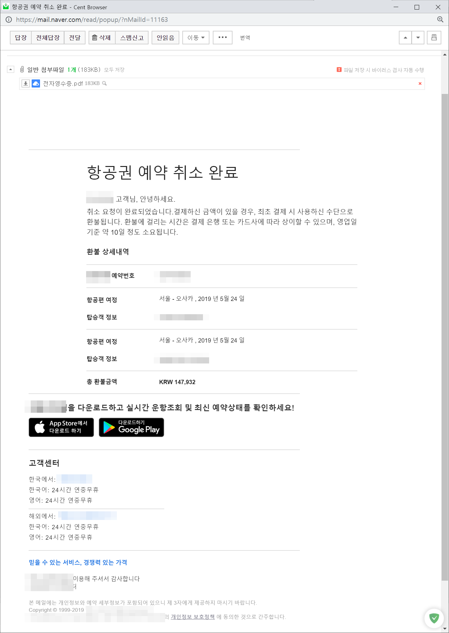처음 나가는 편 티켓비용이 27만원이었으니, 취소하고 환불되는 금액이 14만원이다.