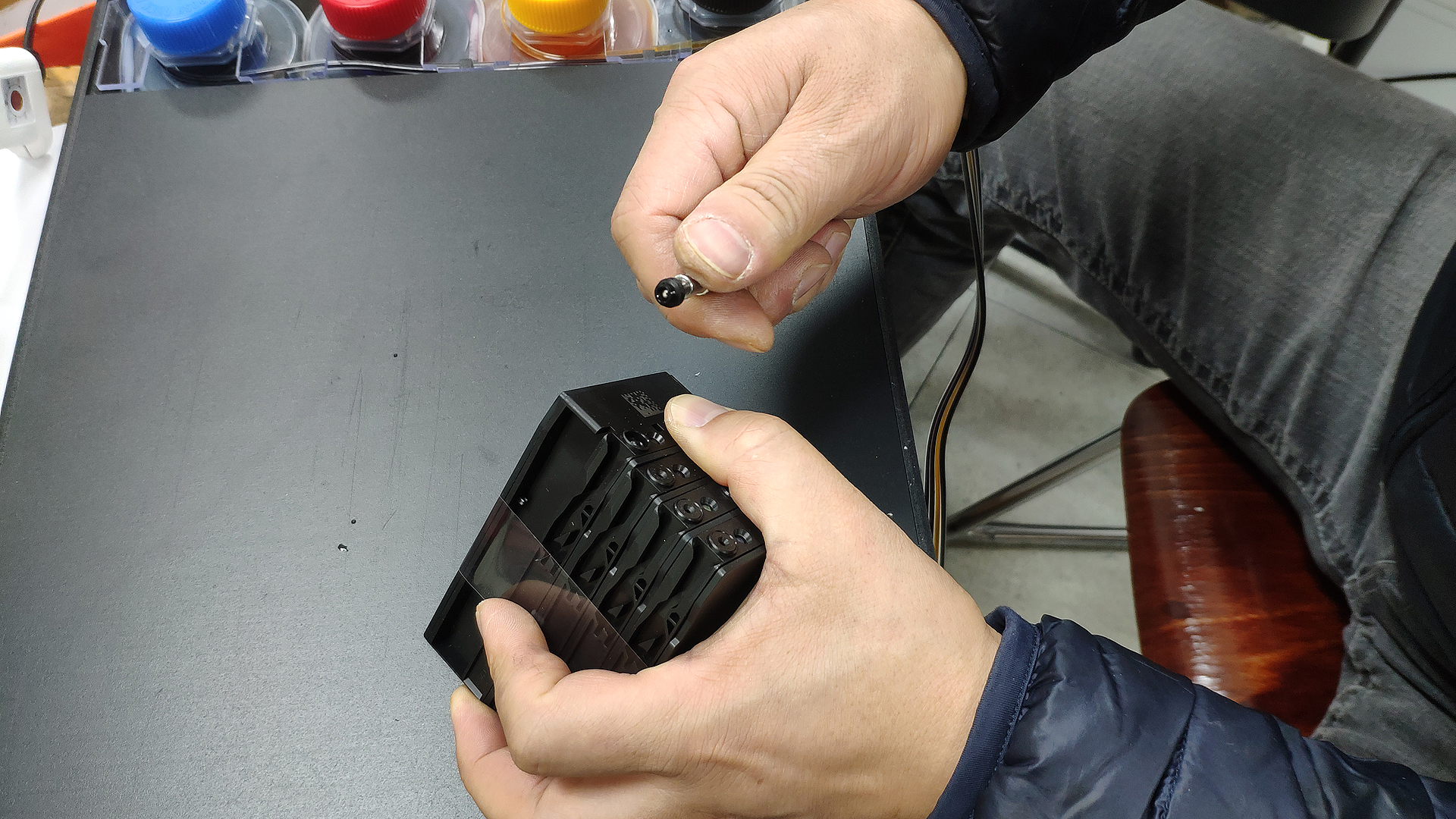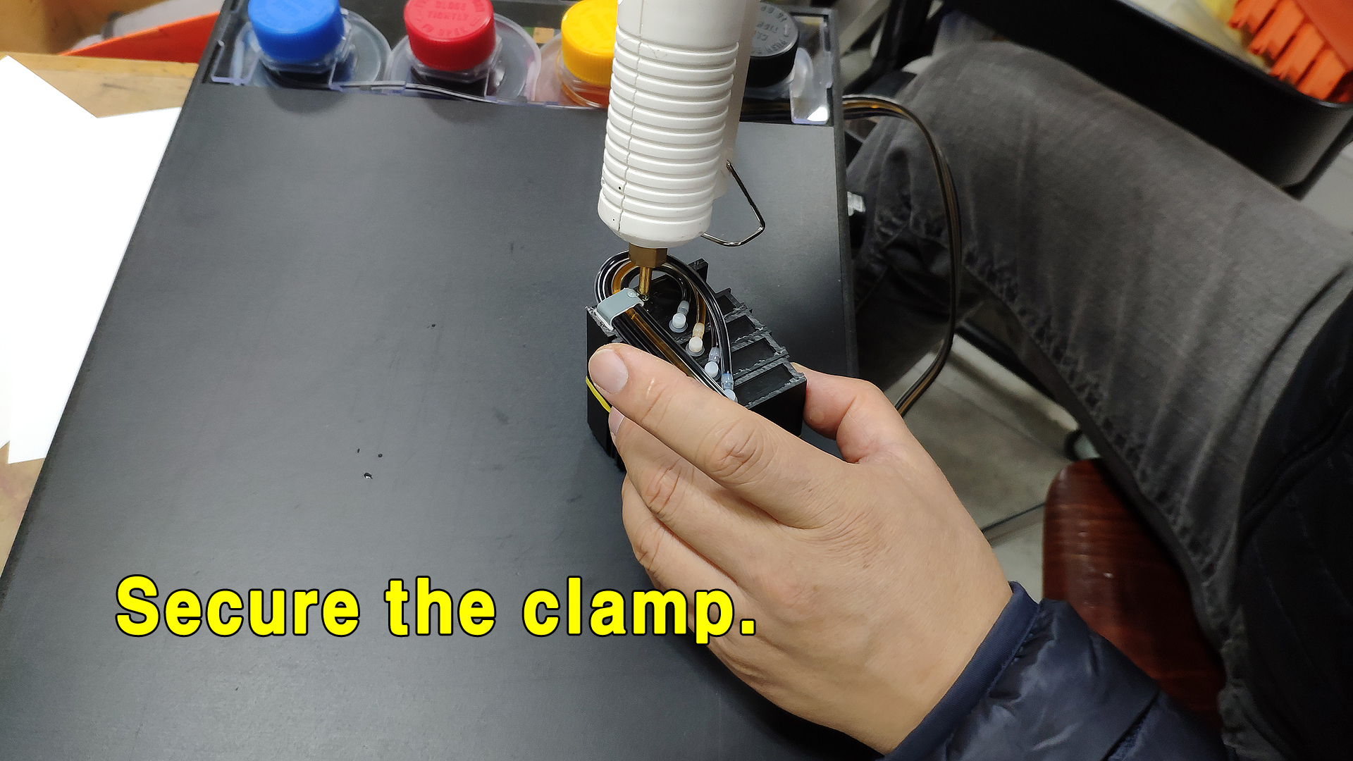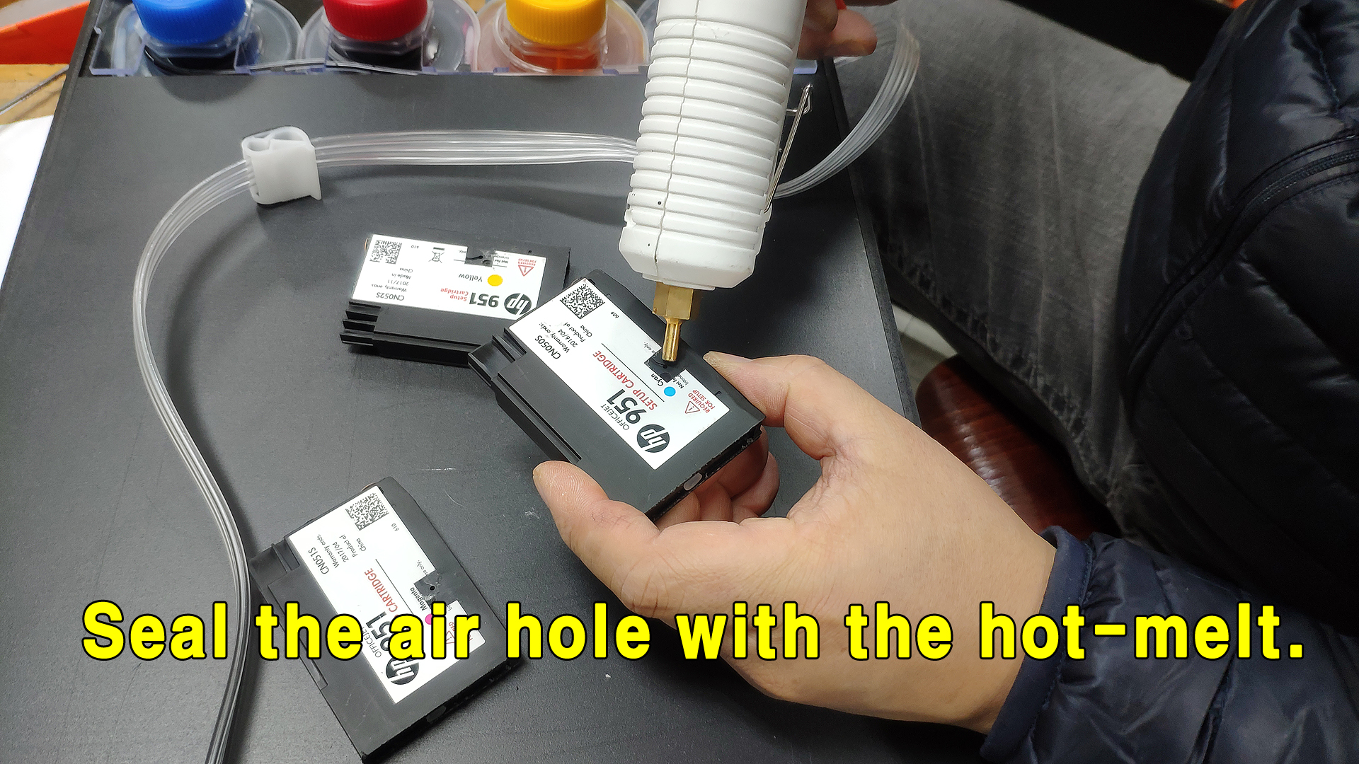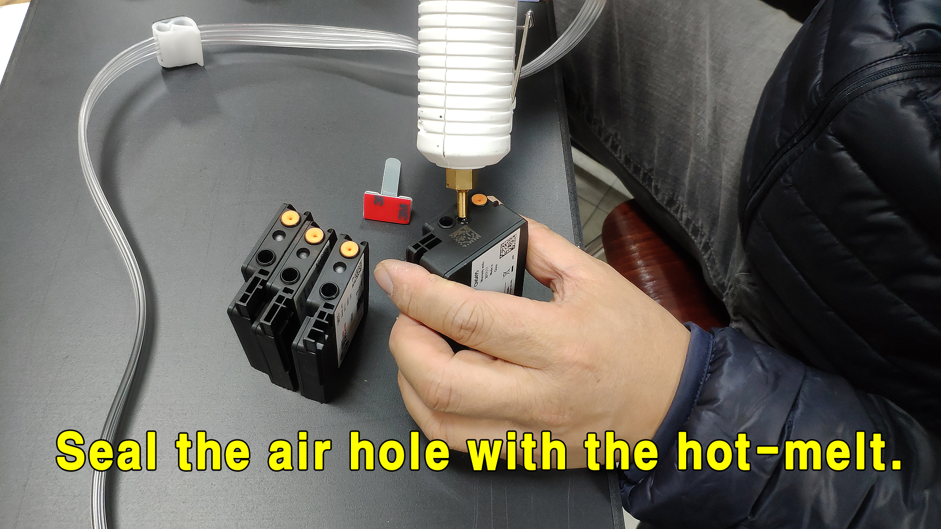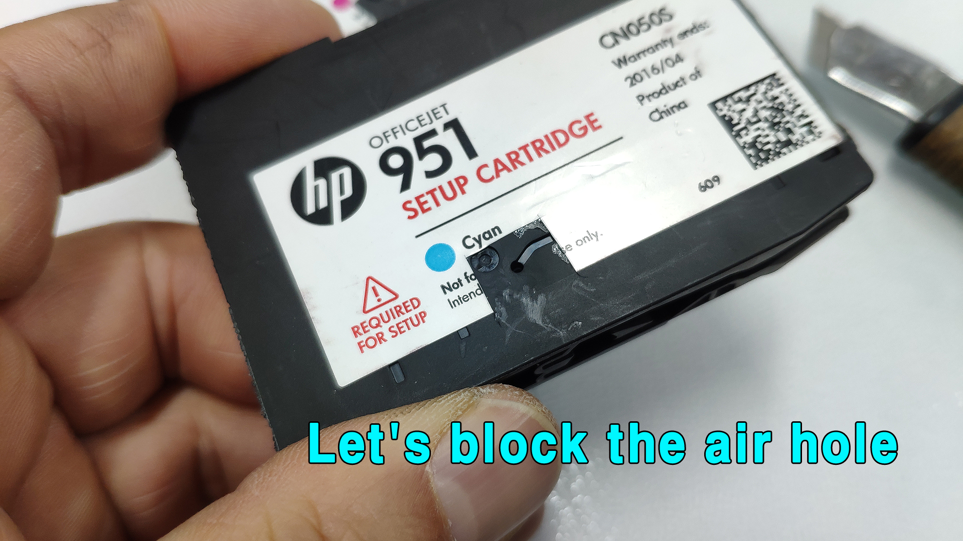 이제 카트리지의 공기구멍을 막을 차례입니다.