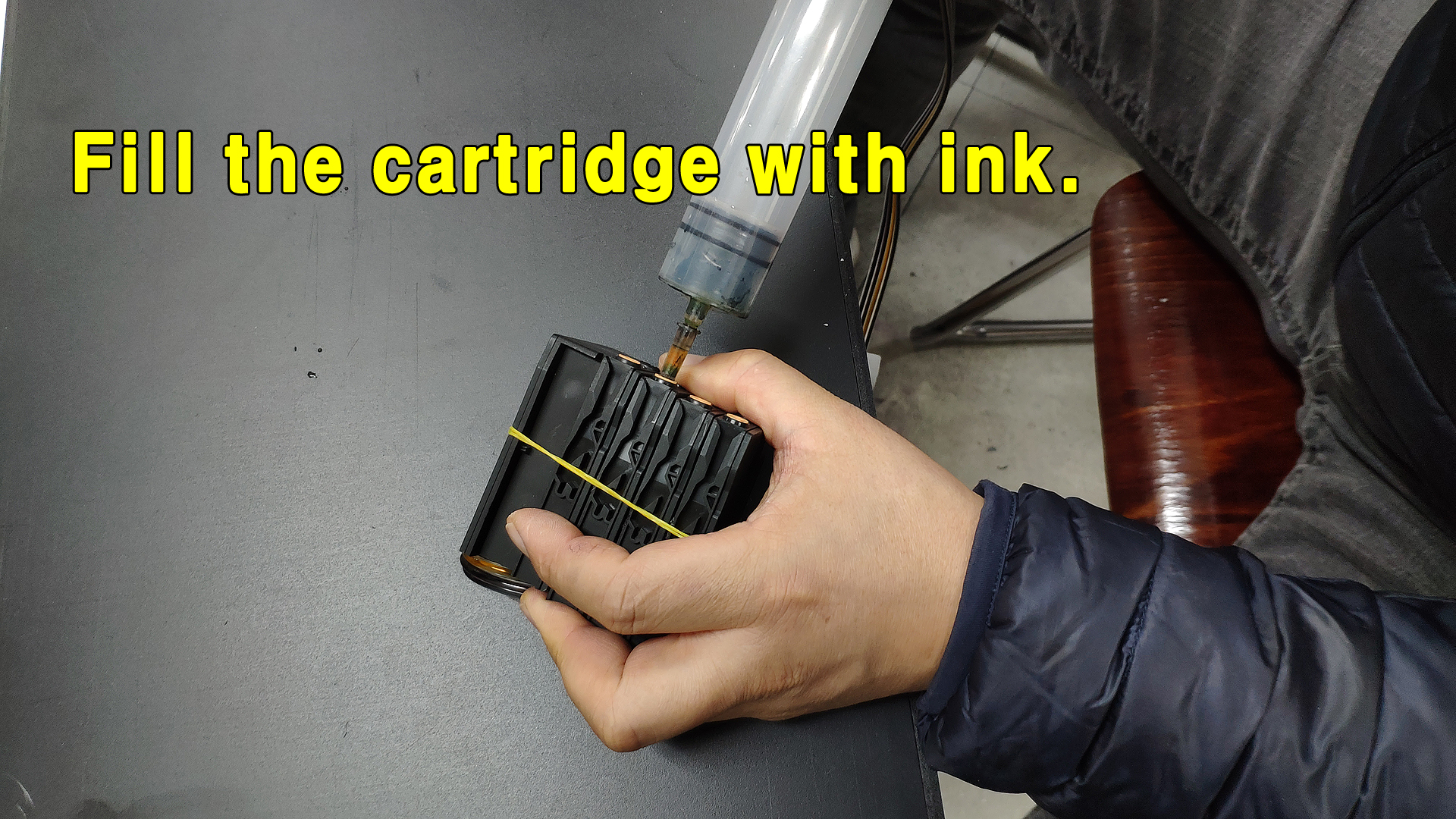 카트리지에 잉크가 채워집니다.
