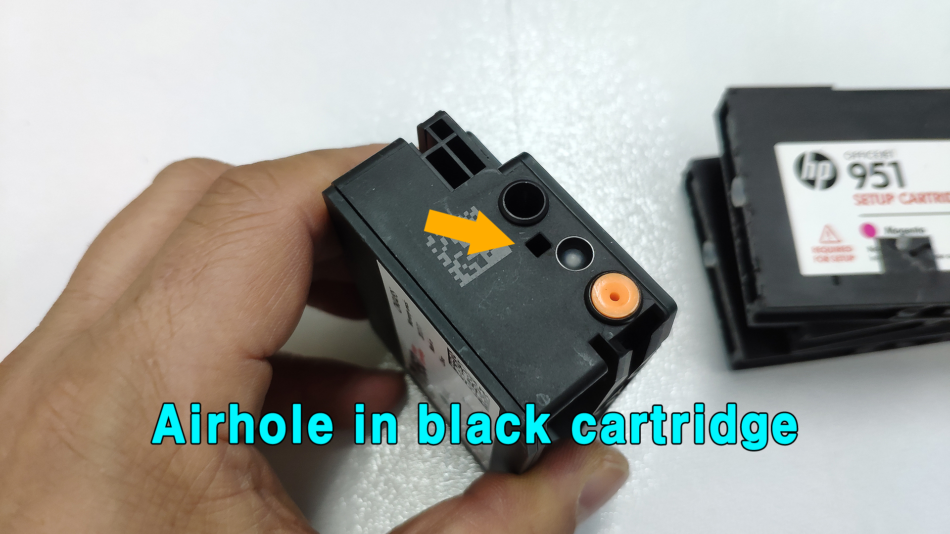 검정색 카트리지는 에어홀이 다른 곳에 위치하고 있는데,