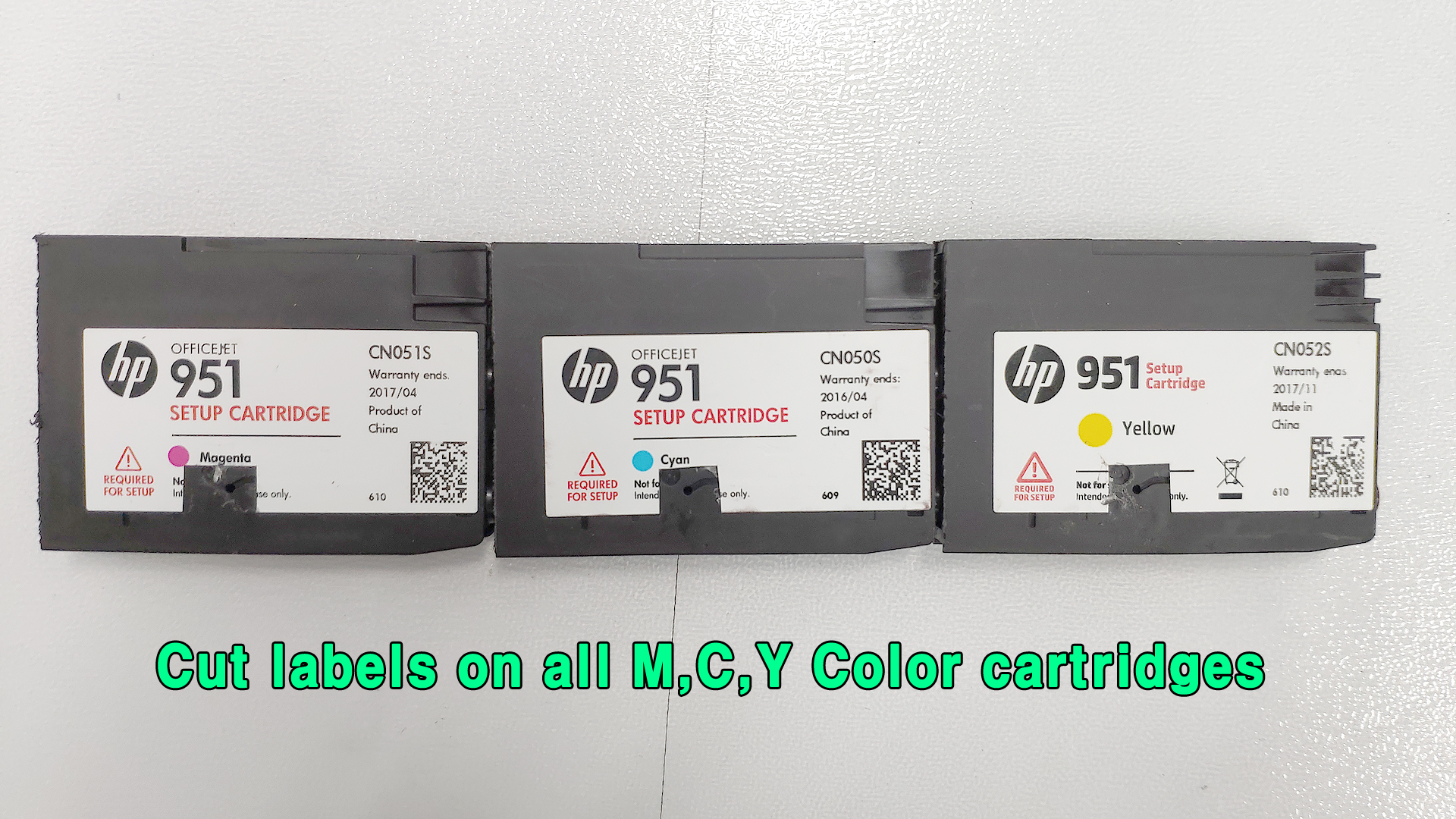 C,M,Y 3색 카트리지는 모두 라벨을 잘라 떼어 냅니다.