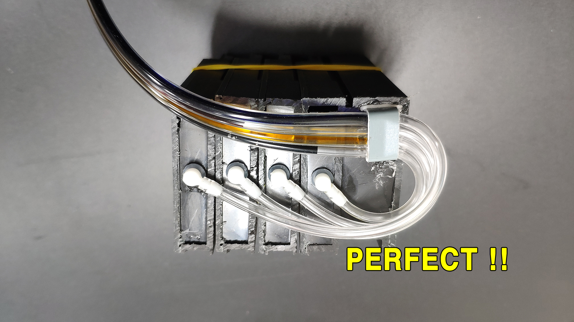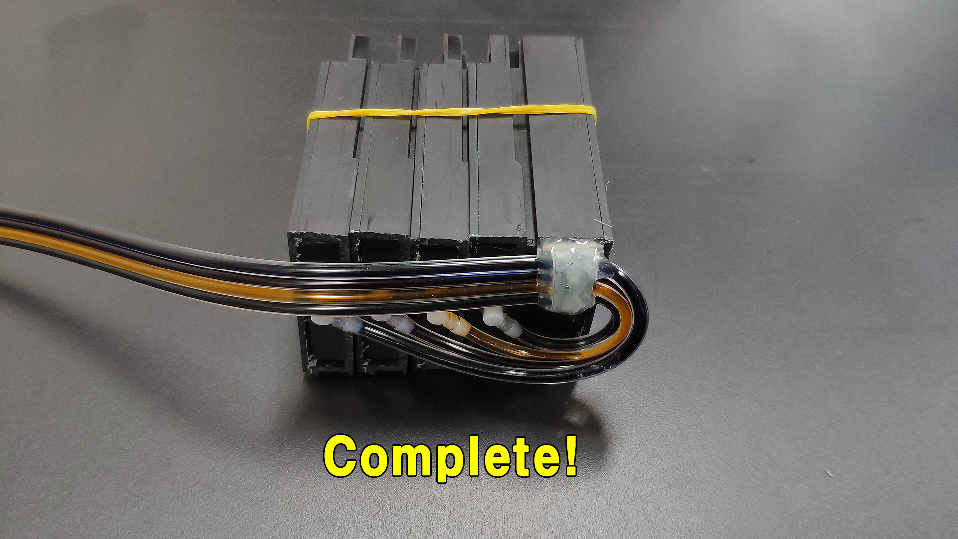 메탈클램프를 둥글게 구부려 튜브 4가닥을 잘 감쌉니다.