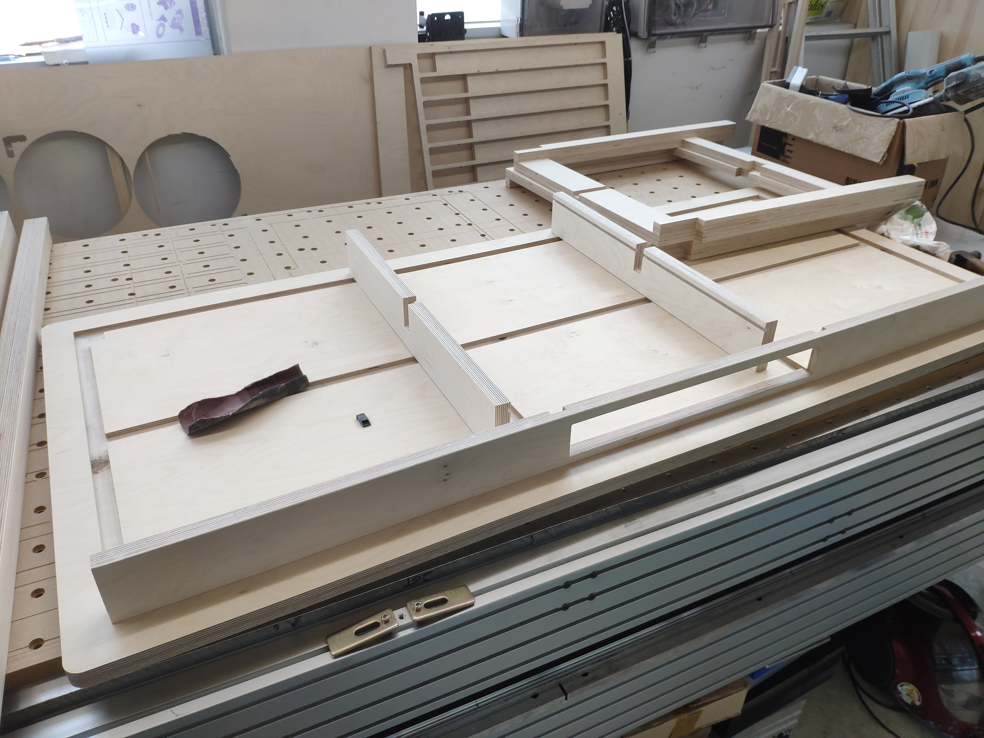 가운데 격벽 등은 무거운 알루미늄 판재를 올려서 본드가 굳는 동안 기다렸습니다.