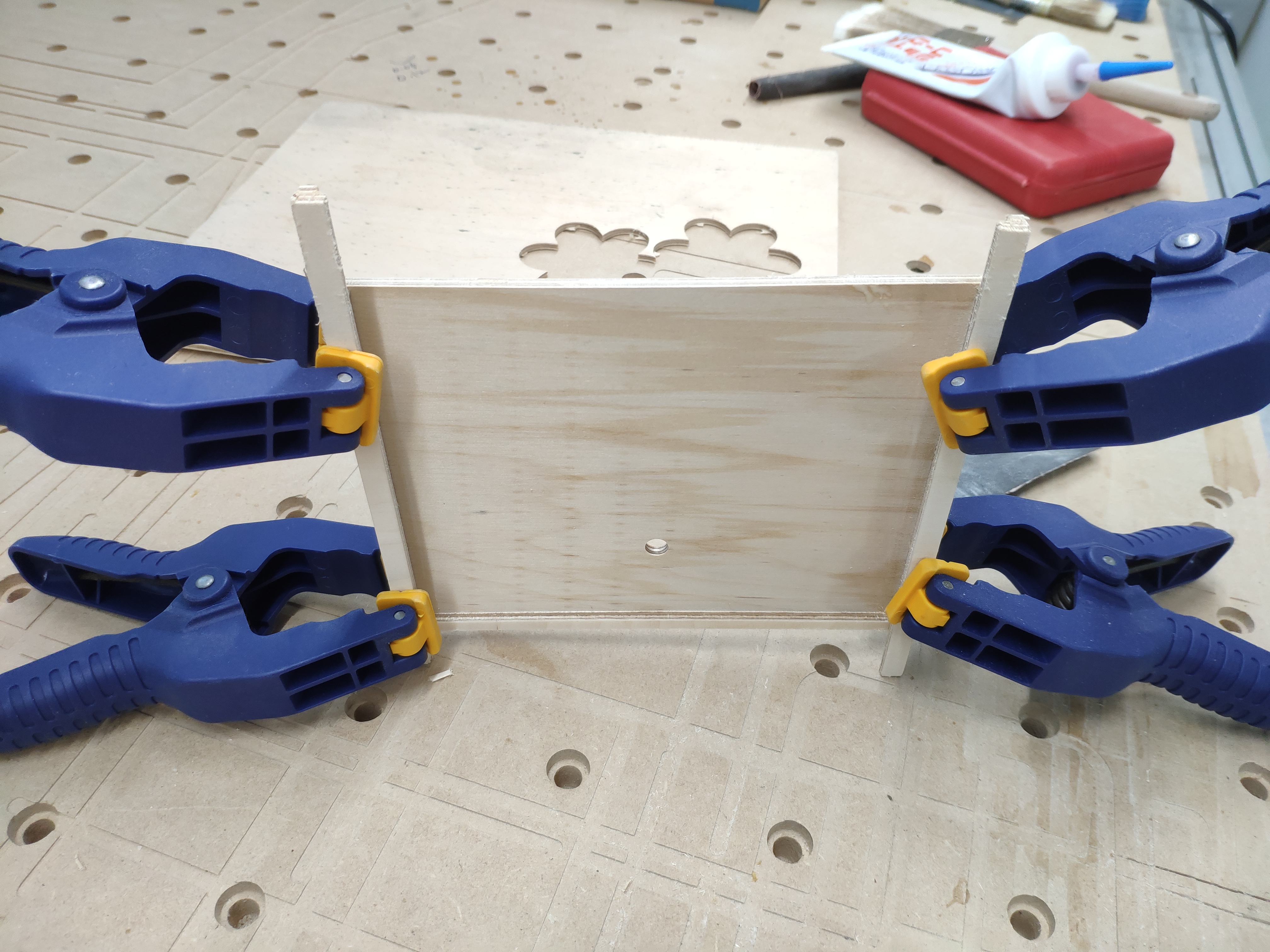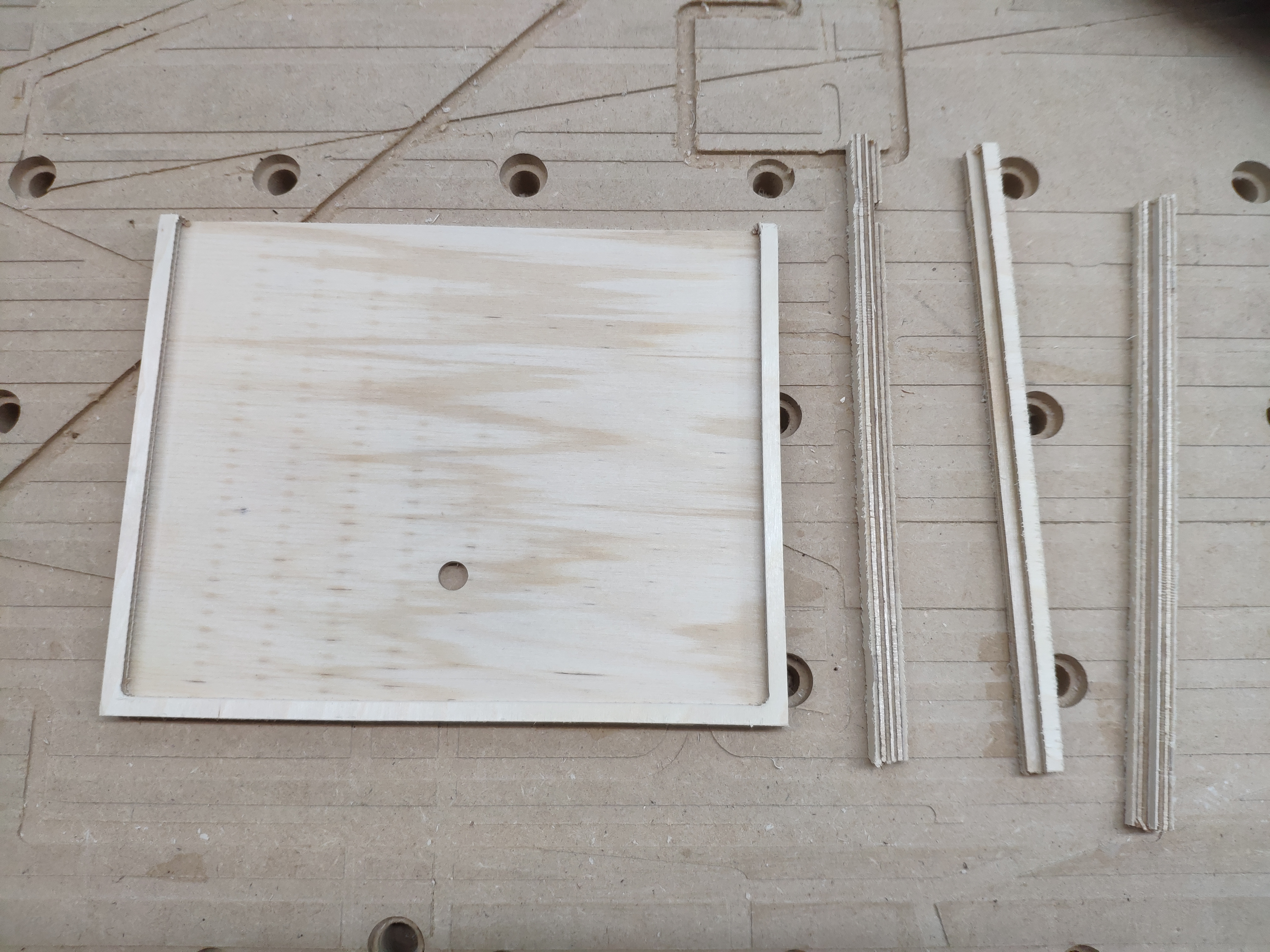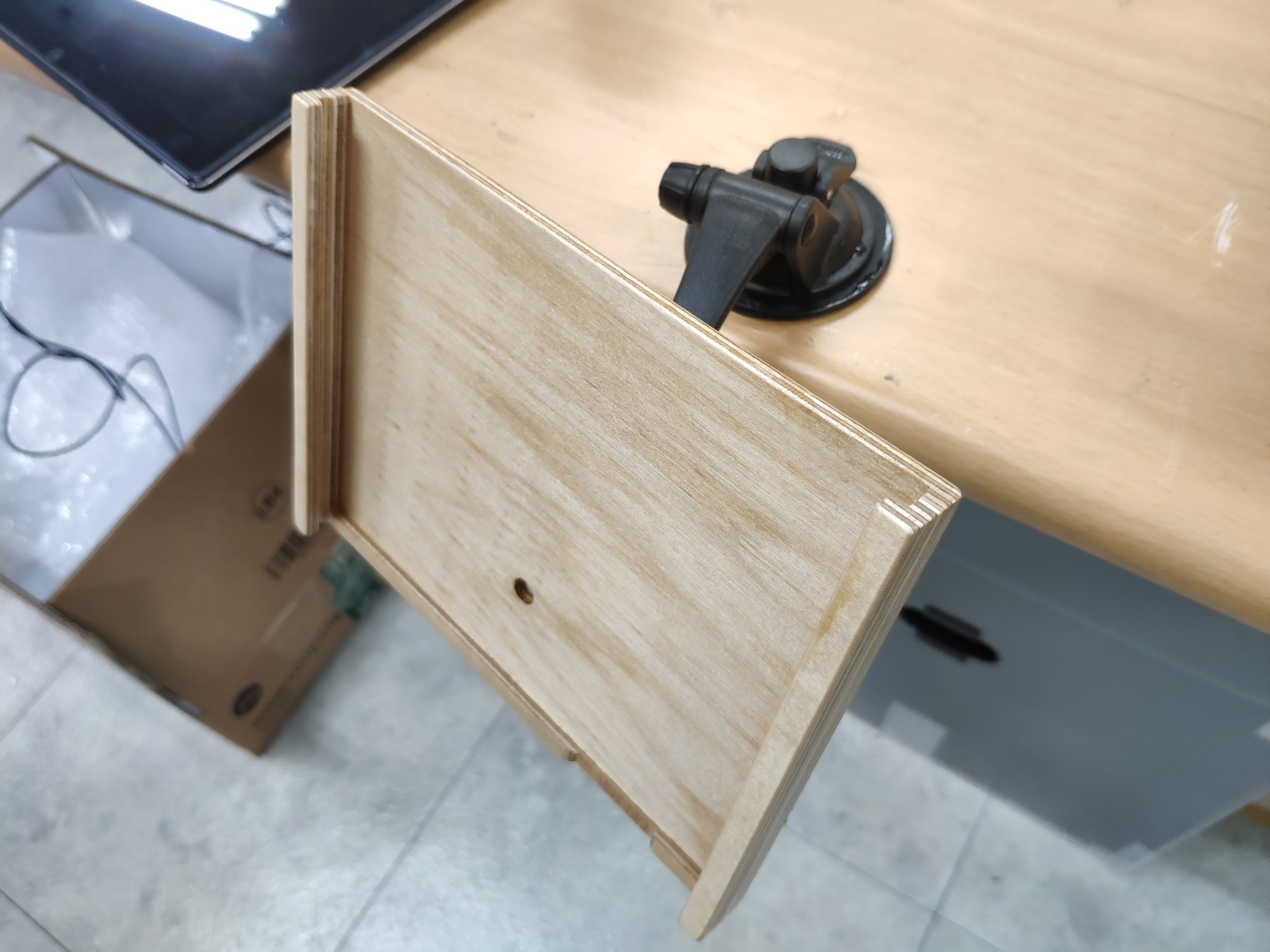실측하여 10인치 태블릿에 맞게 자작나무 합판을 따 낸 후,