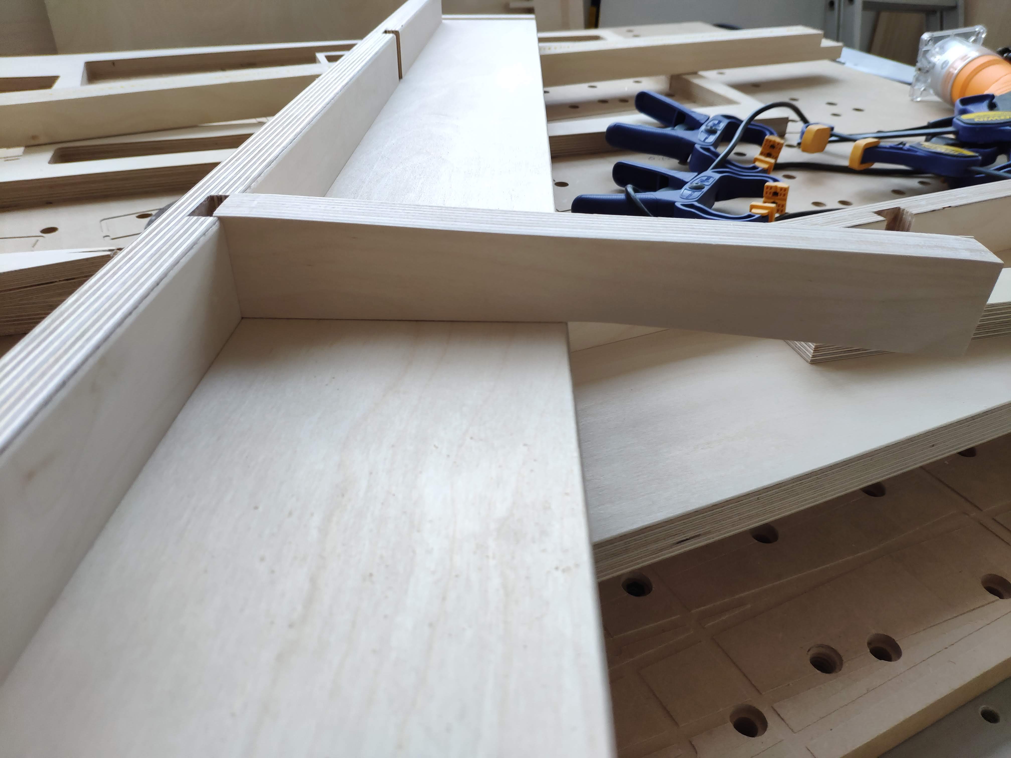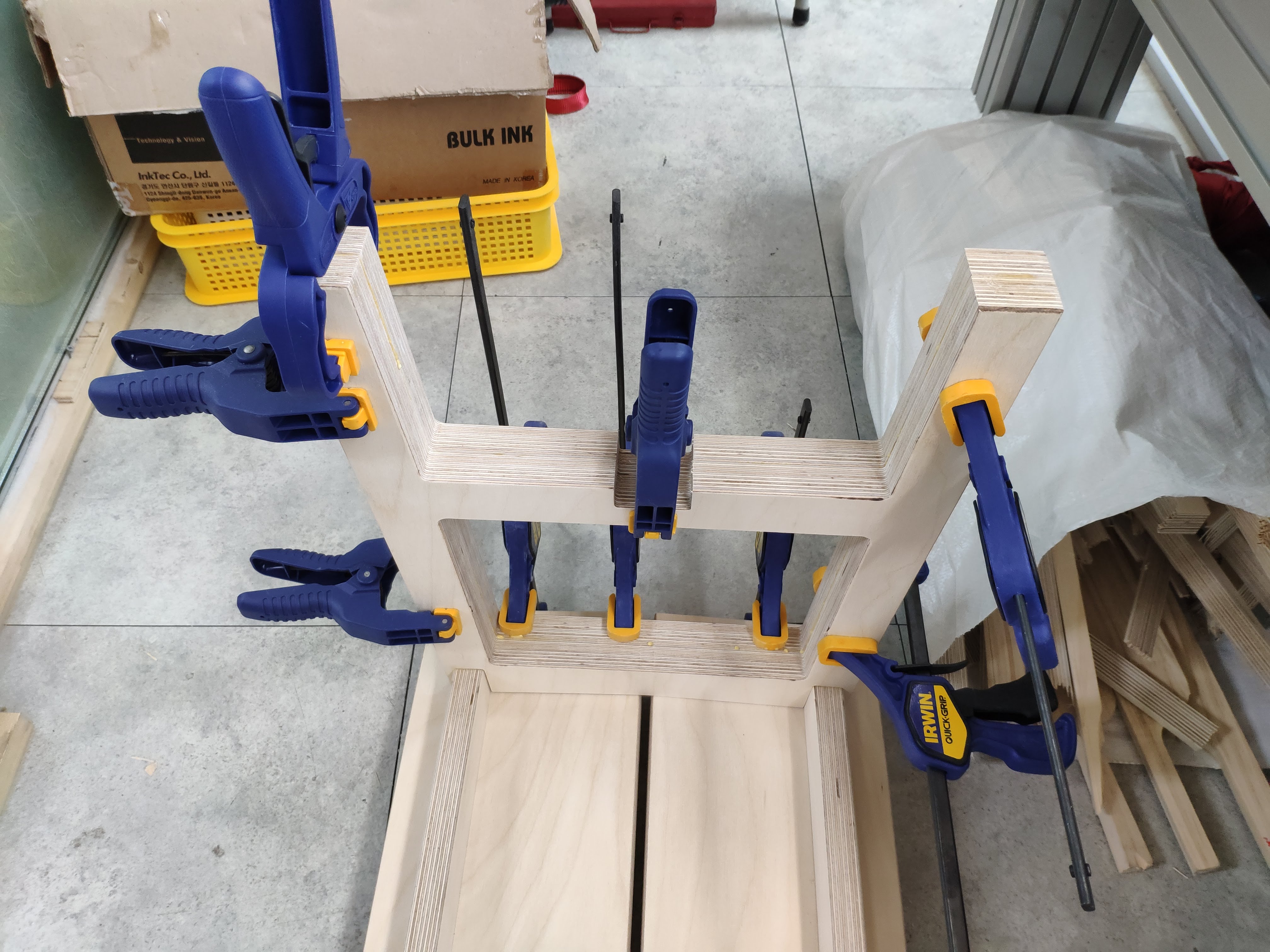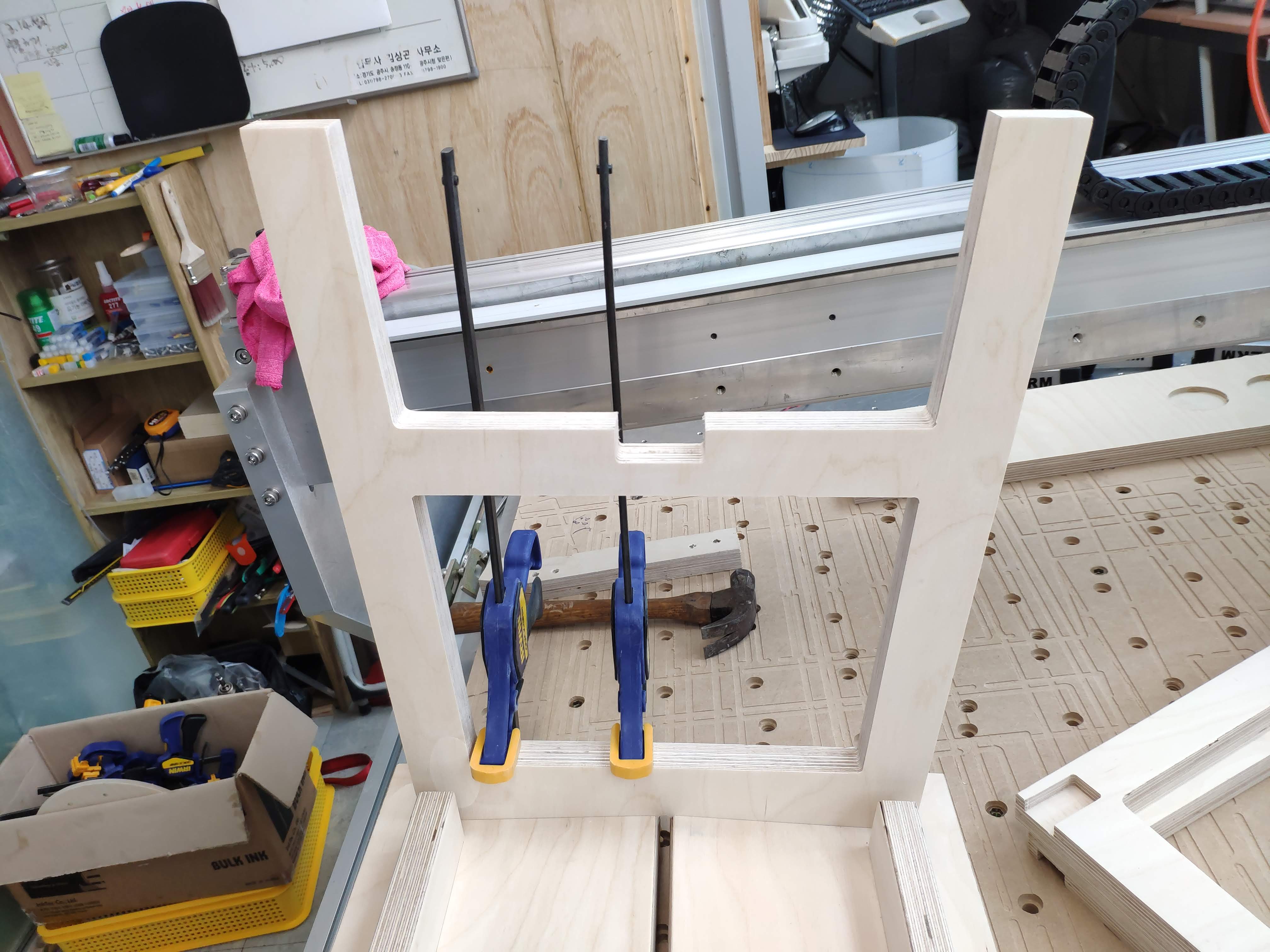 안쪽부분 다리를 끼워 놓고 본딩, 클램핑합니다.