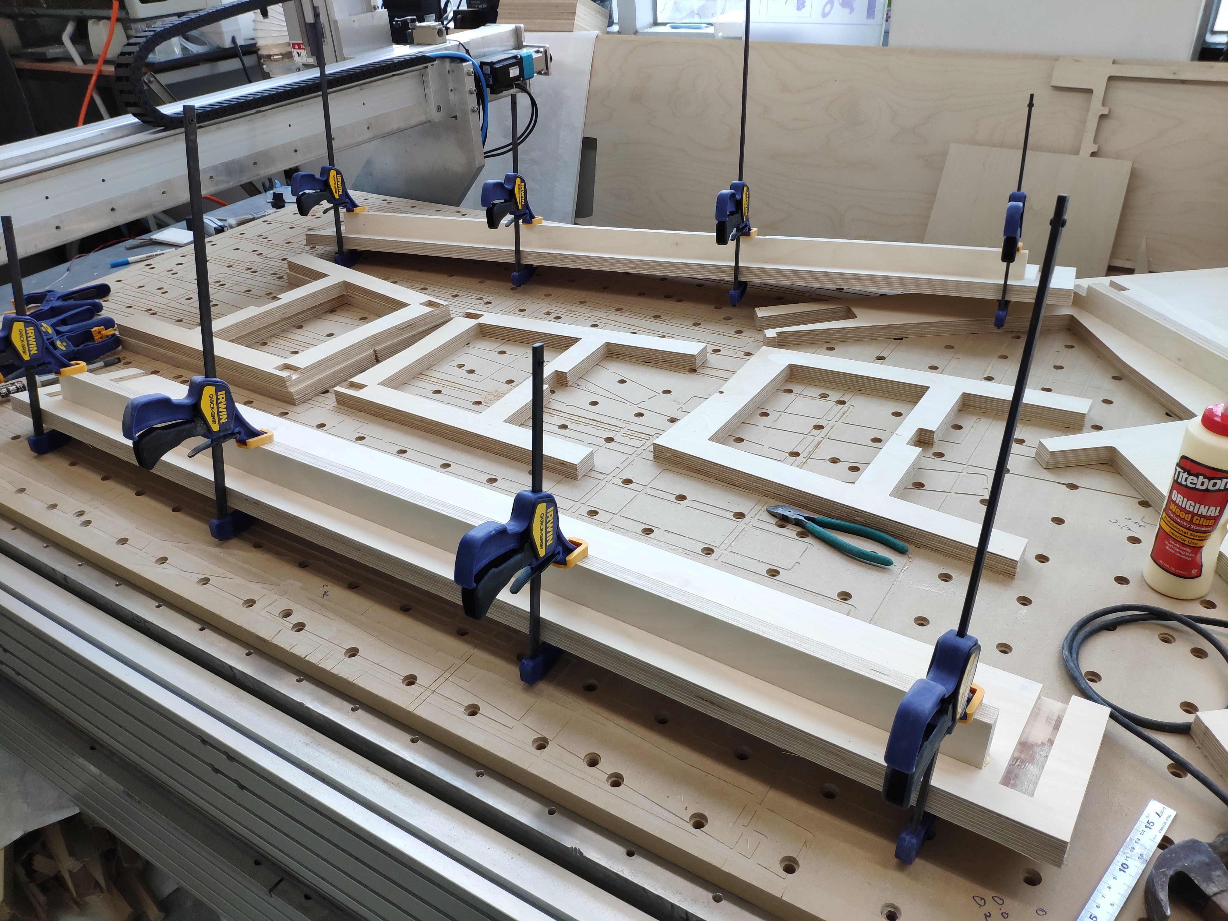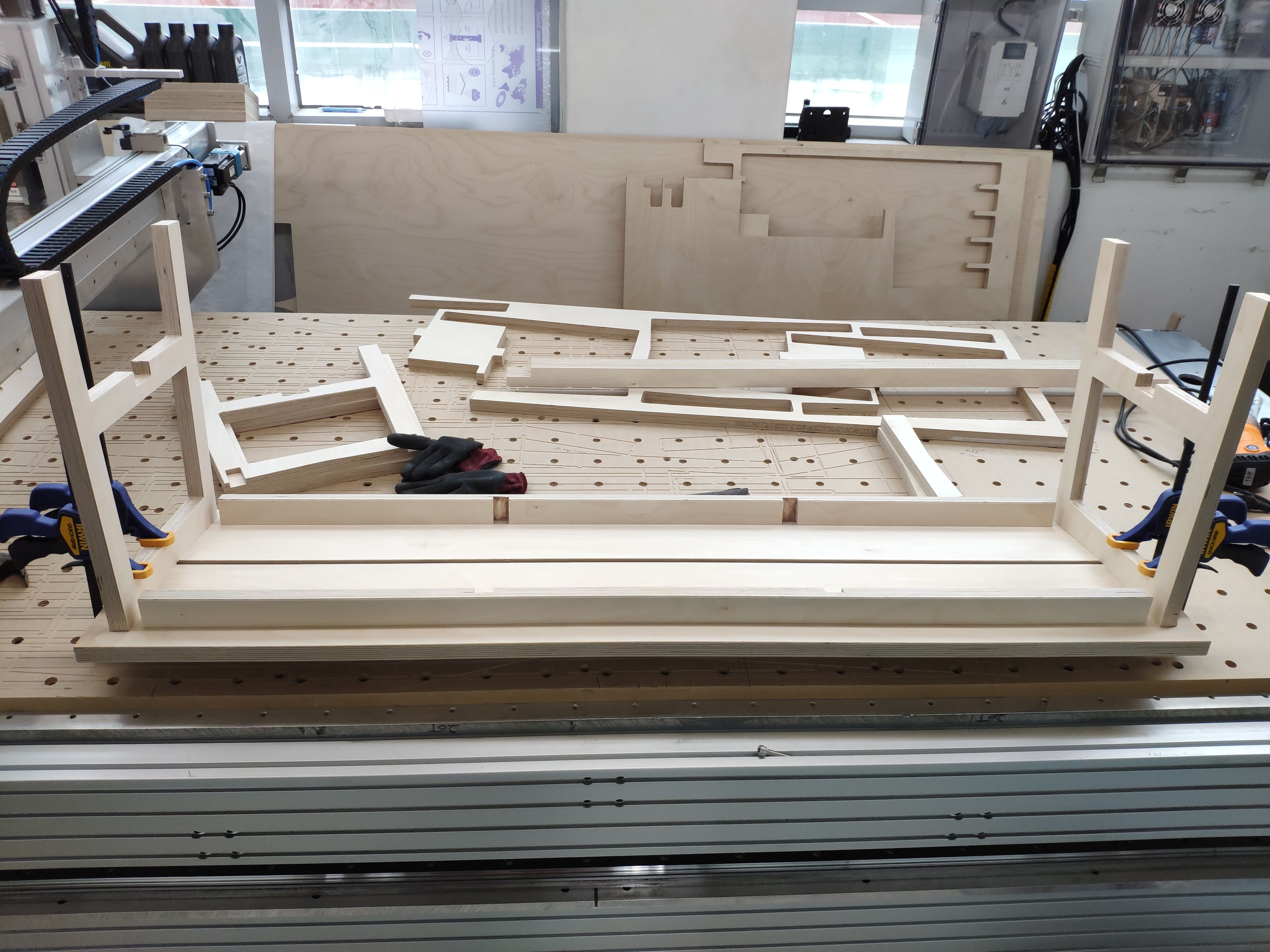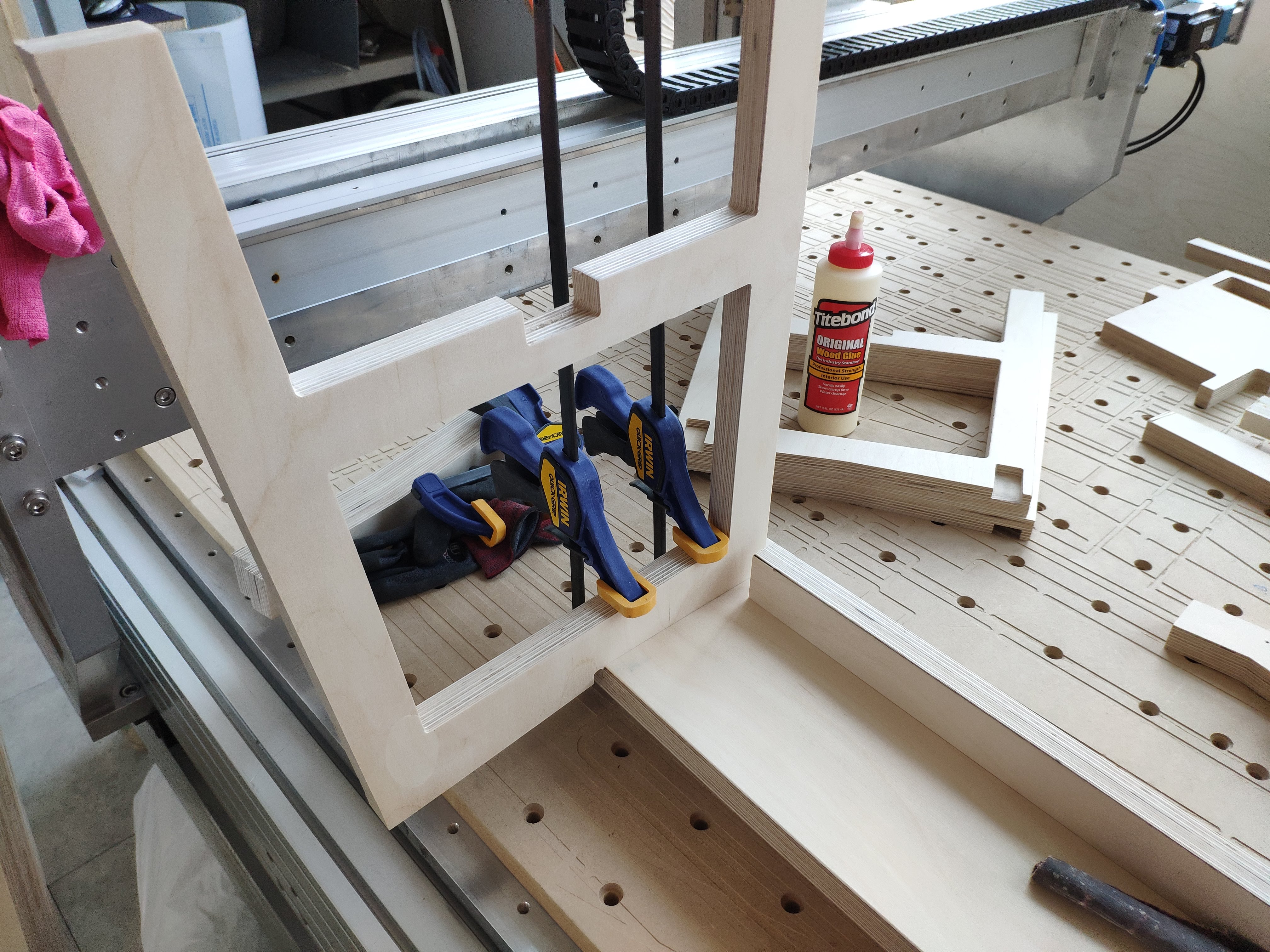 안쪽부분 다리를 끼워 놓고 본딩, 클램핑합니다.
