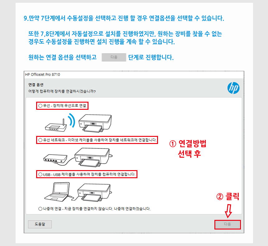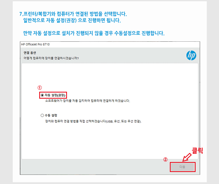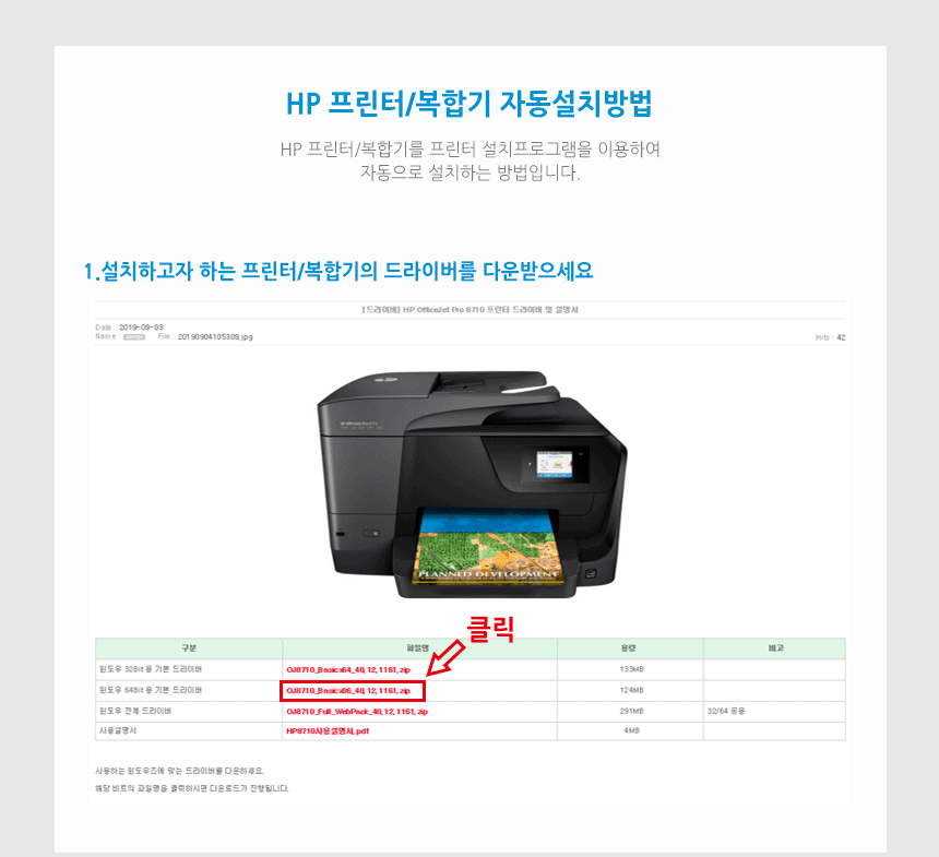 HP 오피스젯 8710 및 관련 유사한 프린터/복합기의 프린터 드라이버를 다운받은 후 정식 설치하는 설명서입니다.