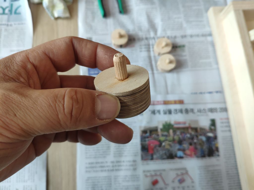 그 회전축 역할도 당연히 자작합판을 가공하여 만들었습니다.