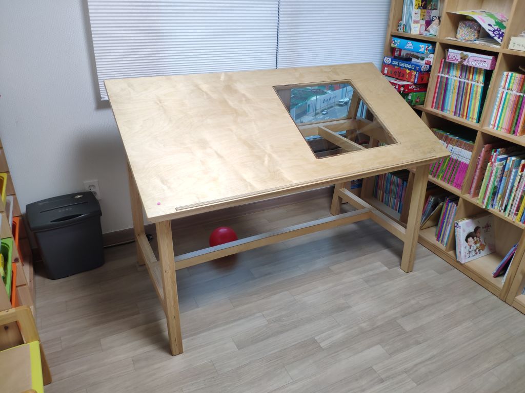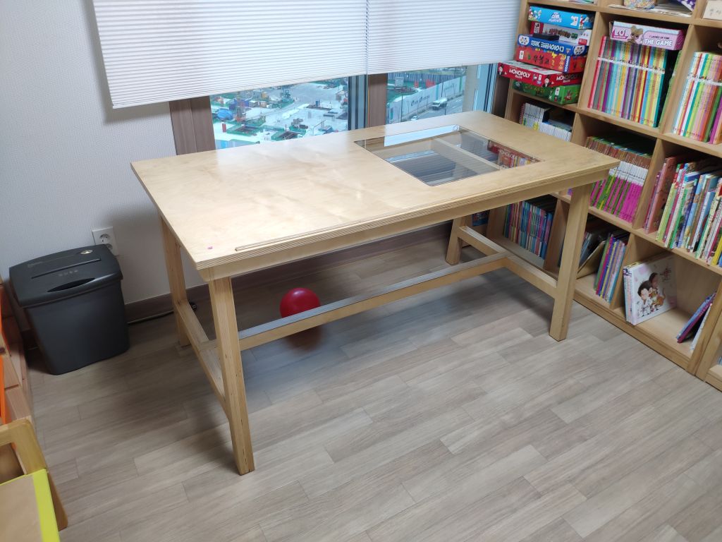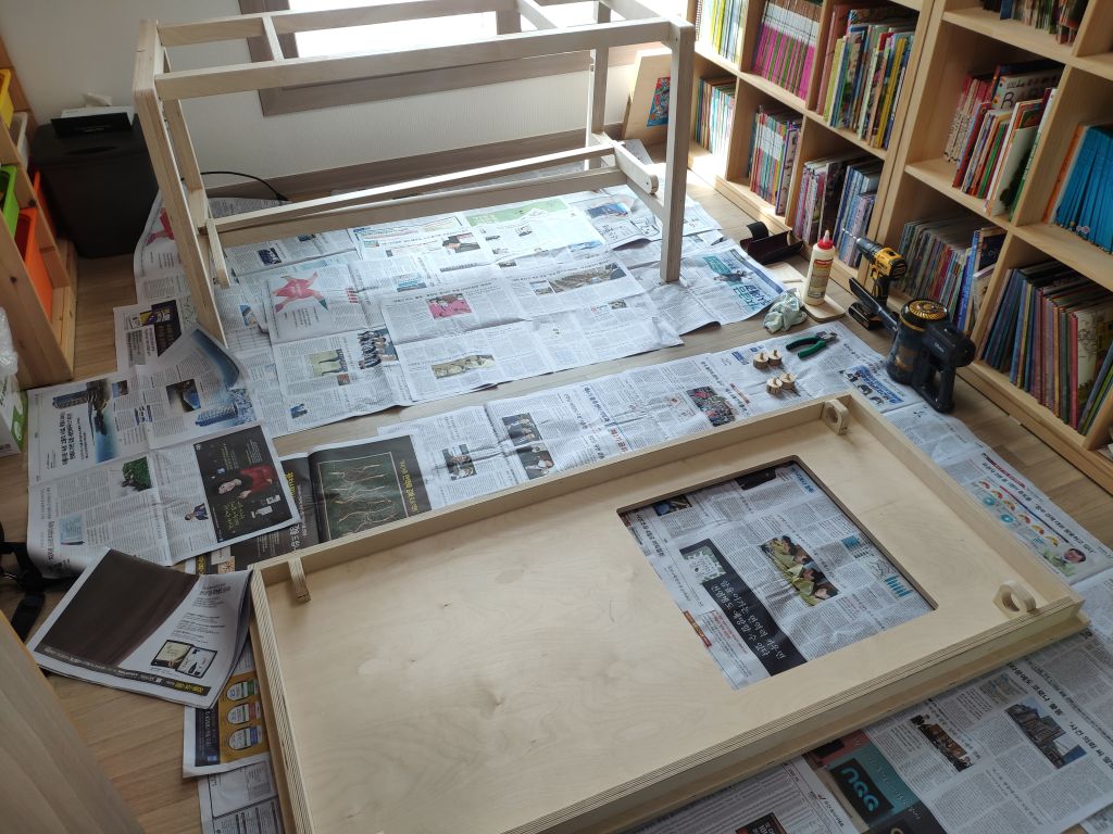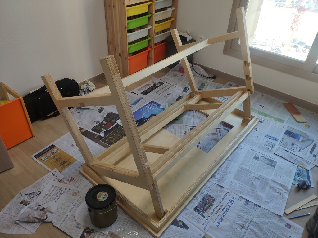 그 고정 합판을 중심으로 책상 상판이 회전하게 만든거죠.