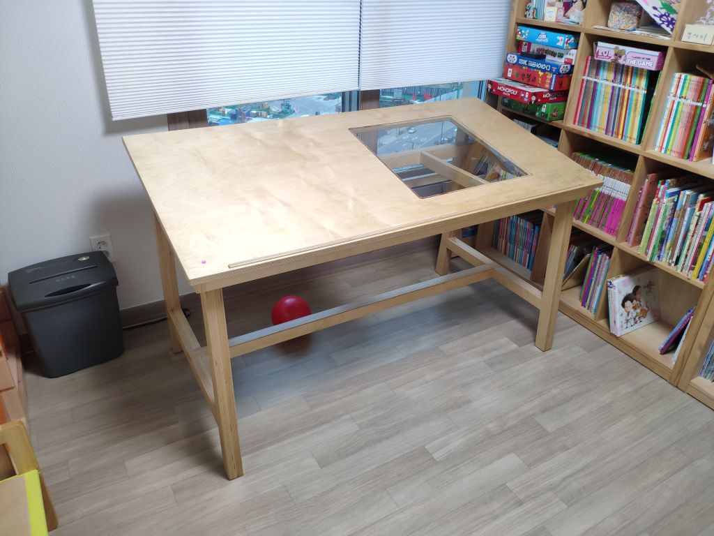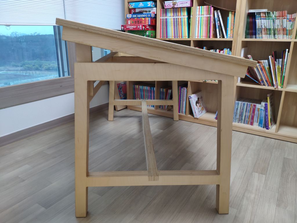 그 고정 합판을 중심으로 책상 상판이 회전하게 만든거죠.