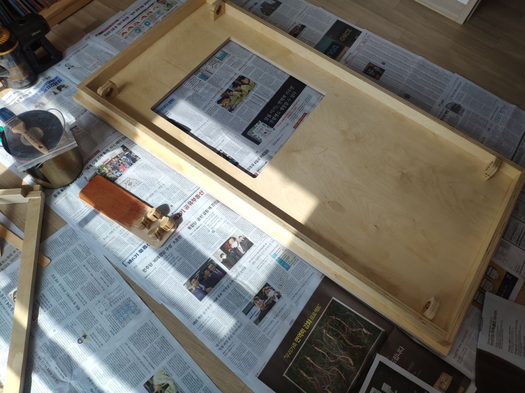 작년에 자작나무 합판으로 만든 소파... 그 때 남은 바니쉬로 마감을 시작합니다.