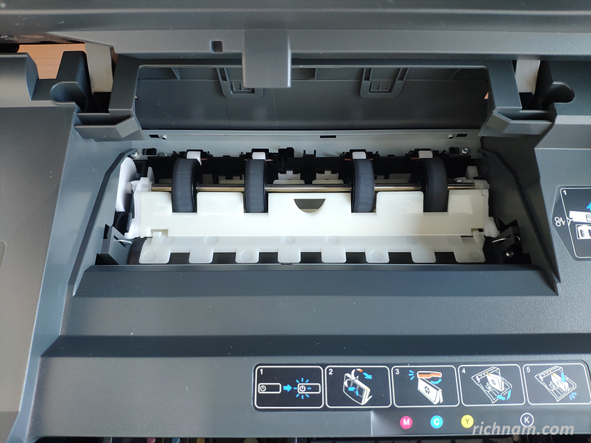 문서자동공급장치 ADF를 열어 봐도 기존 모델들과 똑같이 생겼습니다.