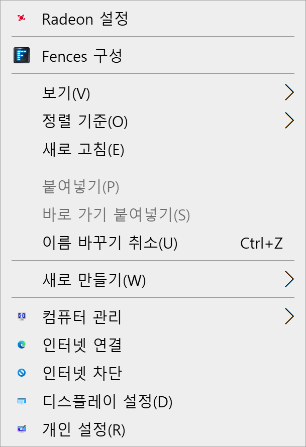 제가 입대업에 종사할 때 사용하면 윈도우즈 바탕화면에서 마우스 우측버튼을 클릭할 때 나오면 메뉴를 생성해 주는 레지스트리 올립니다.
