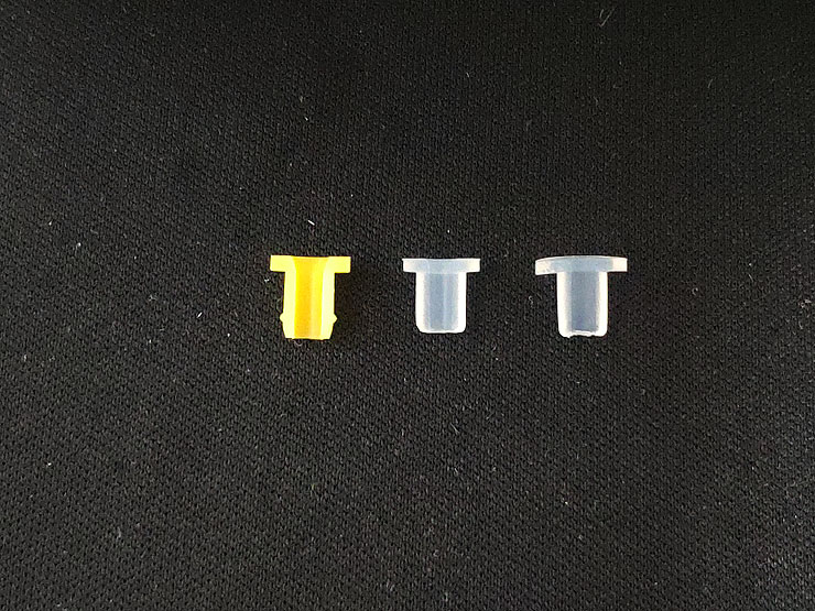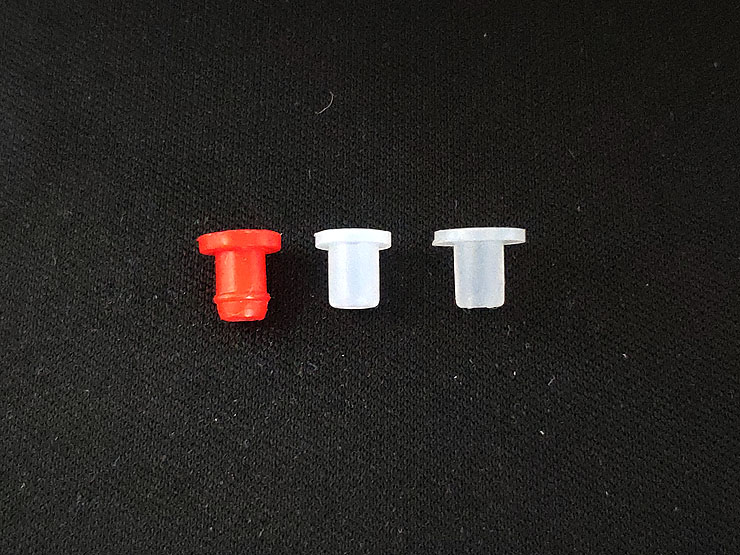 가운데 제품과 우측 제품의 차이는 외형적으로는 윗 머릿부분의 크기와 재질 차이가 있습니다.