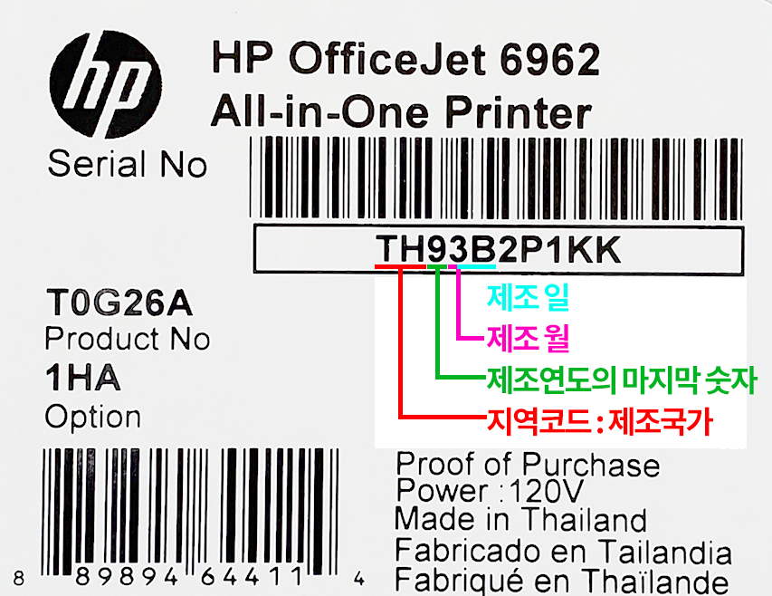 제품번호를 확인해 보니 Serial No TH93B2P1KK 라고 되어 있네요 ~