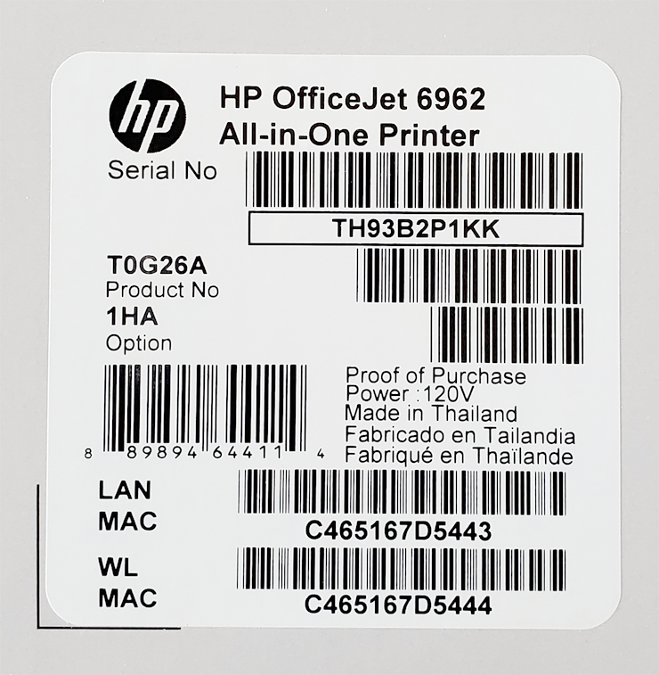 HP OFFICEJET 6962 복합기의 제품태그입니다.