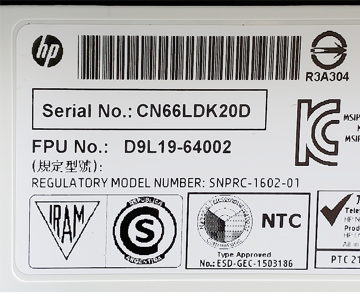 여기는 Serial No. : CN66LDK20D 라고 되어 있네요.