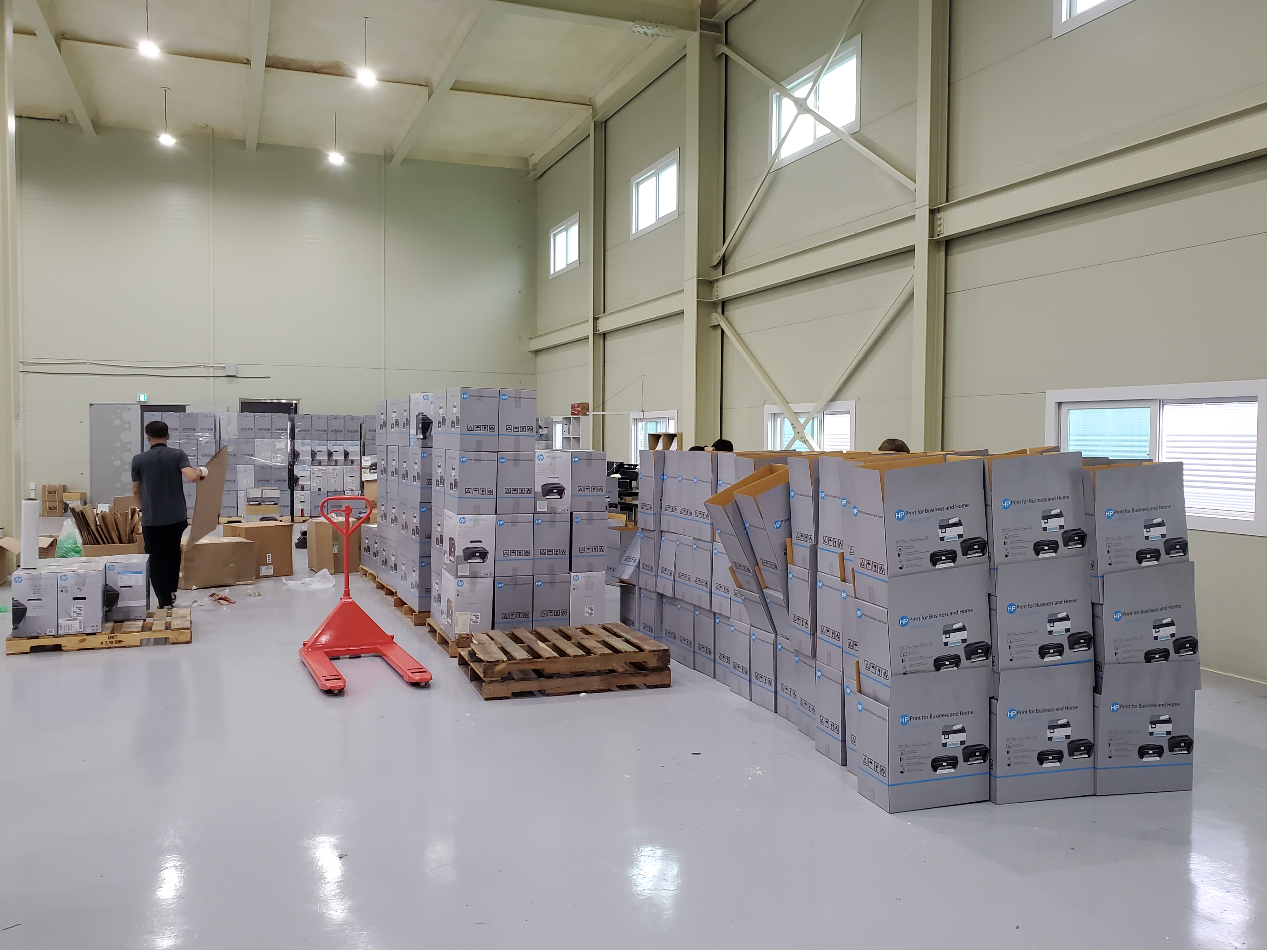들어 온 장비들은 팔레트에 작업되어 들어 왔습니다.