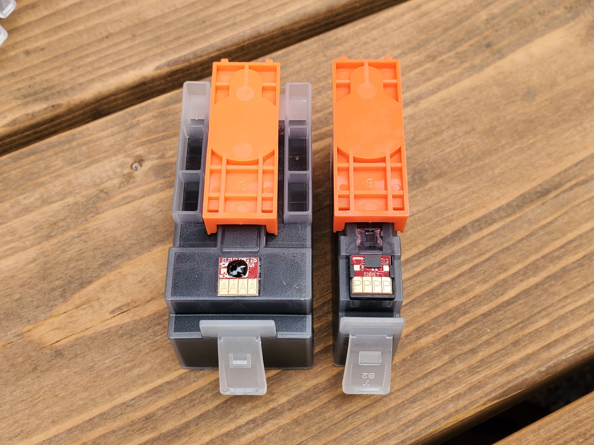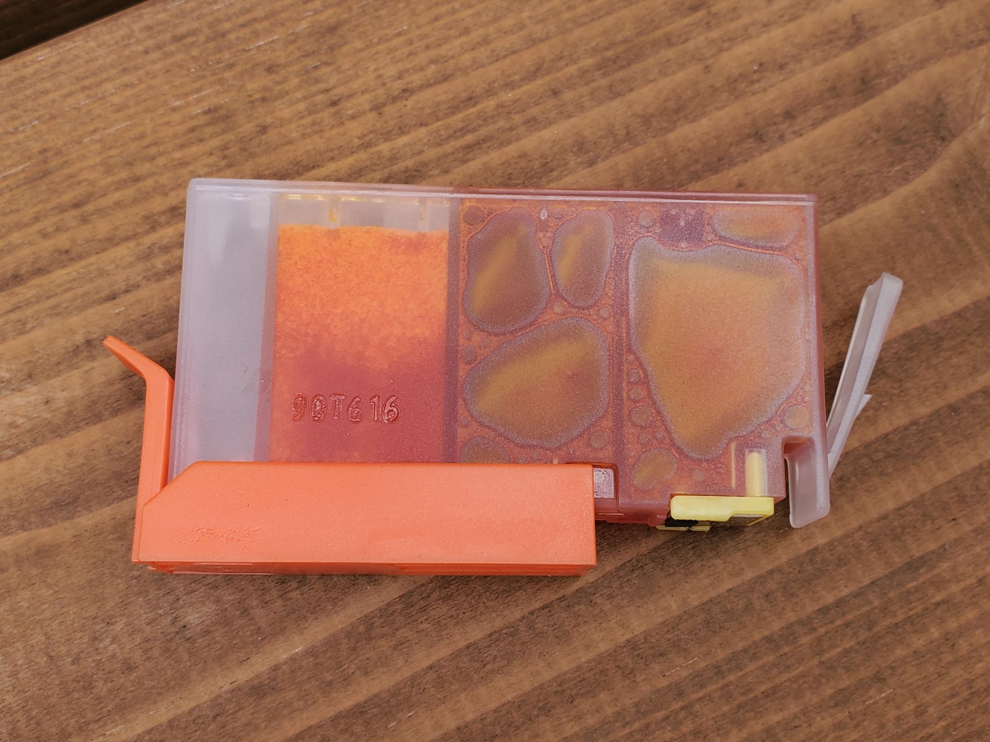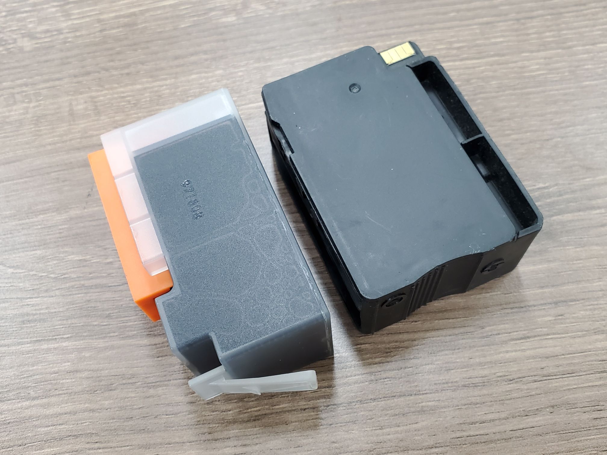 방이 3개로 나뉘어 있고 우측 방 두개에는 잉크가 가득 들어 있습니다.