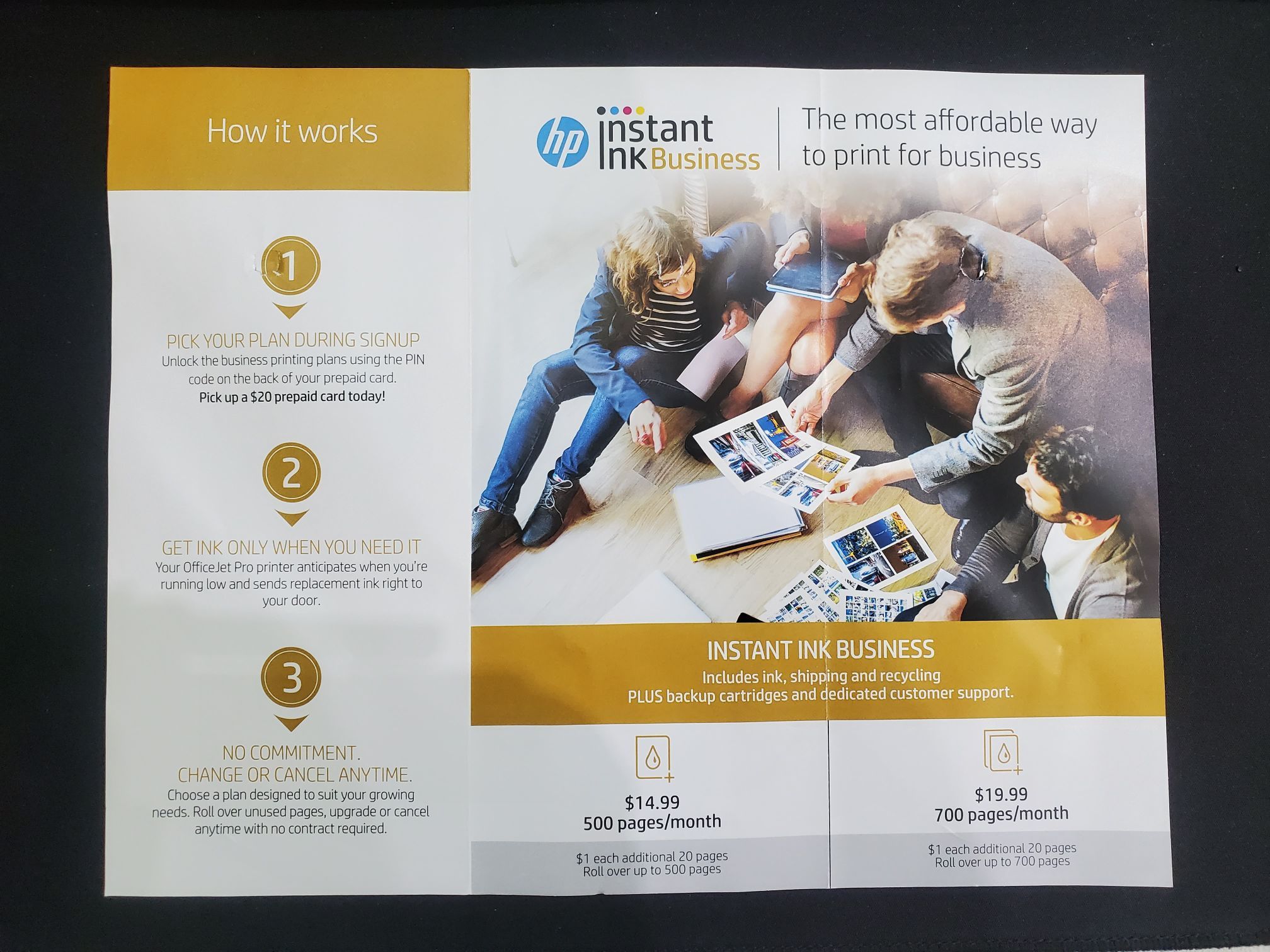 미국에서 HP 총판업체를 통해 배포된 인스턴트 잉크 광고지를 보면