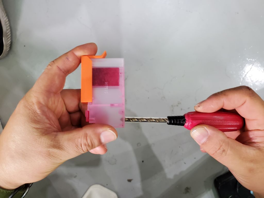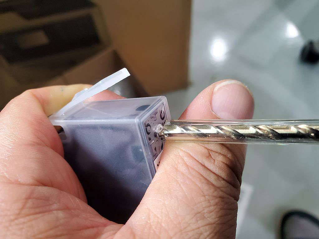 저는 텅스텐 재질의 손드릴로 구멍을 뚫었습니다.