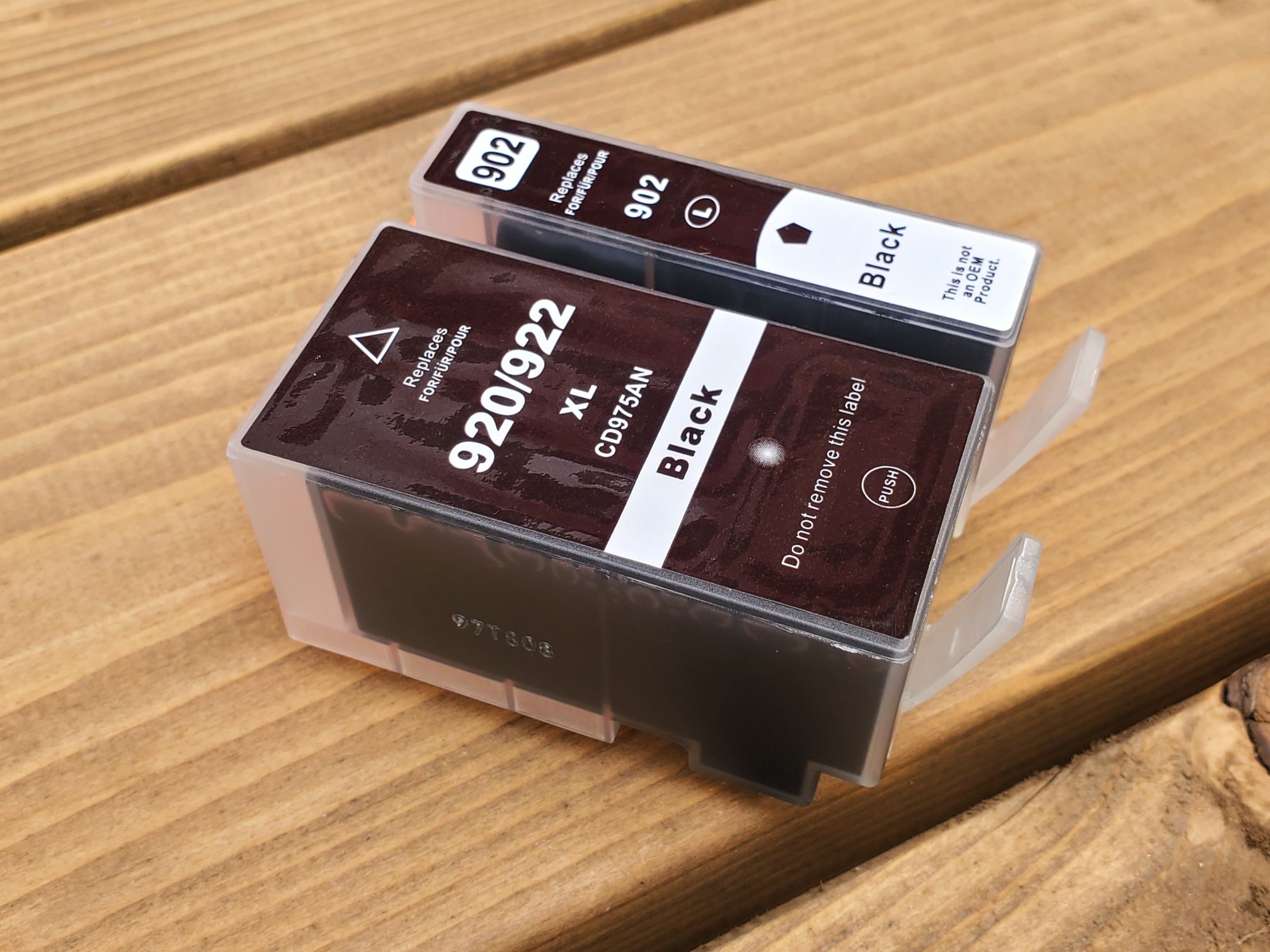 A. 네. 본 90xx 장비에 사용하는 902 호환 잉크 카트리지는 저희 (주)이스턴무역에서 직접 수입과 유통을 책임지고 있습니다. 현재 수입하는 제품은 두 가지가 있는데 세트상품(컬러3색XL사이즈+검정L사이즈)과 검정 대용량(XL) 제품이 있습니다. 컬러 대용량 카트리지(XL)는 500매 출력이며, 검정 라지(L)는 800매 출력이고, 검정 대용량(XL)은 1,500매 출력 제품입니다.