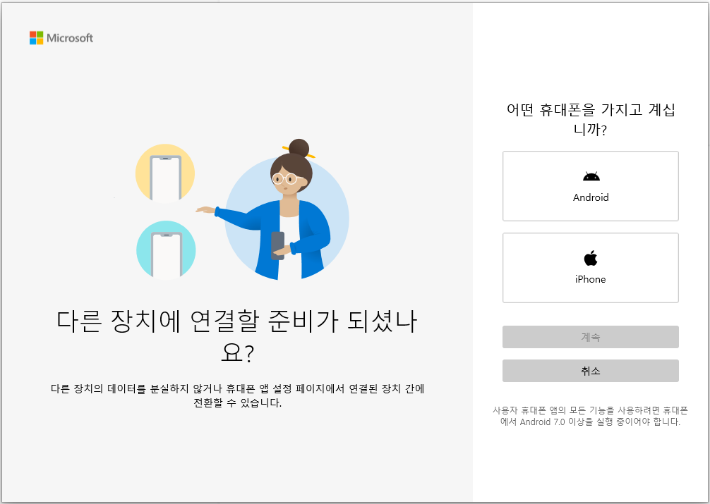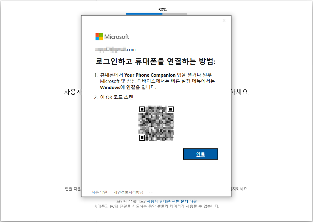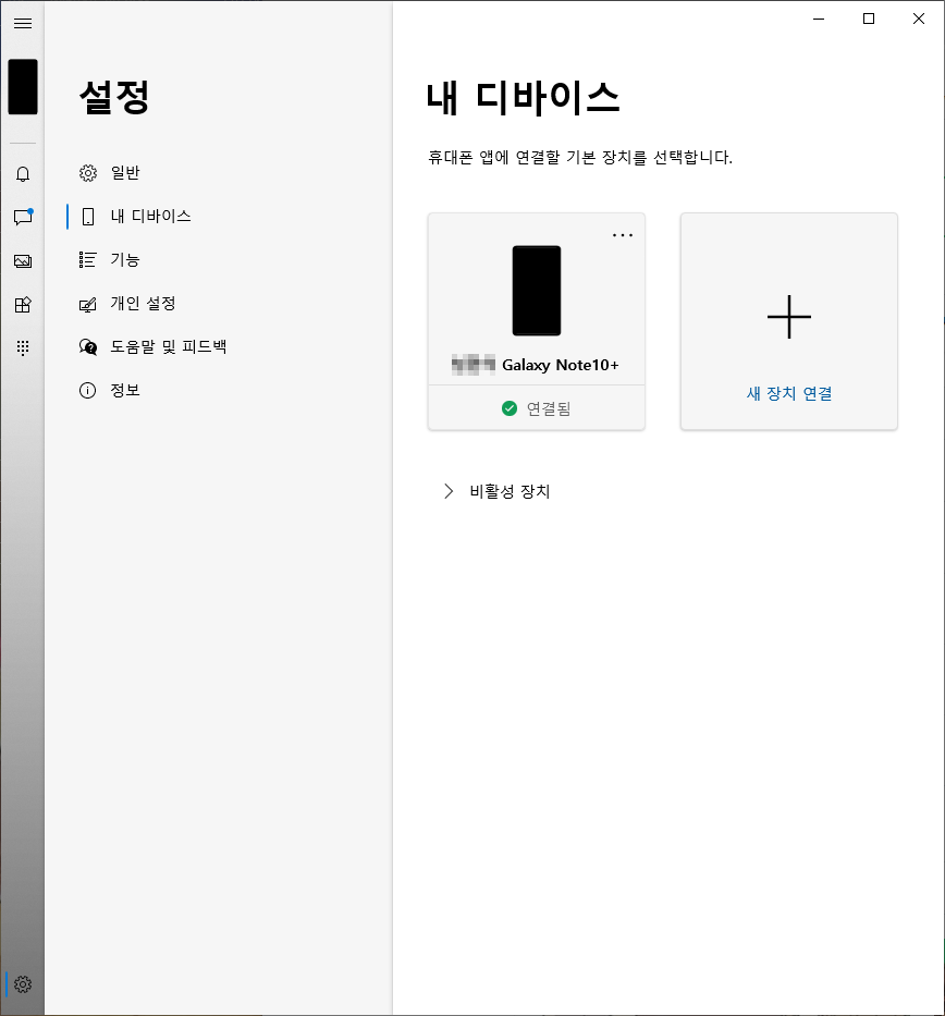 윈도우10과 휴대폰 과의 무선 연결입니다.