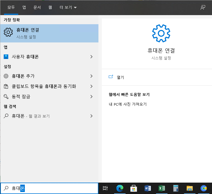 PC에서 검색바에 휴대폰 으로 검색하여 진행하는 방법과